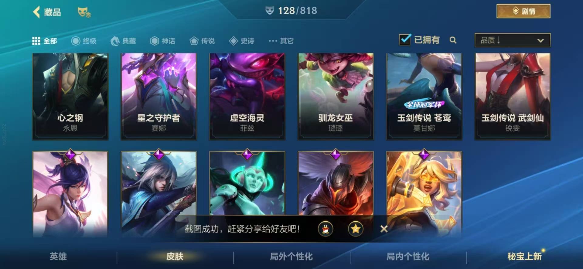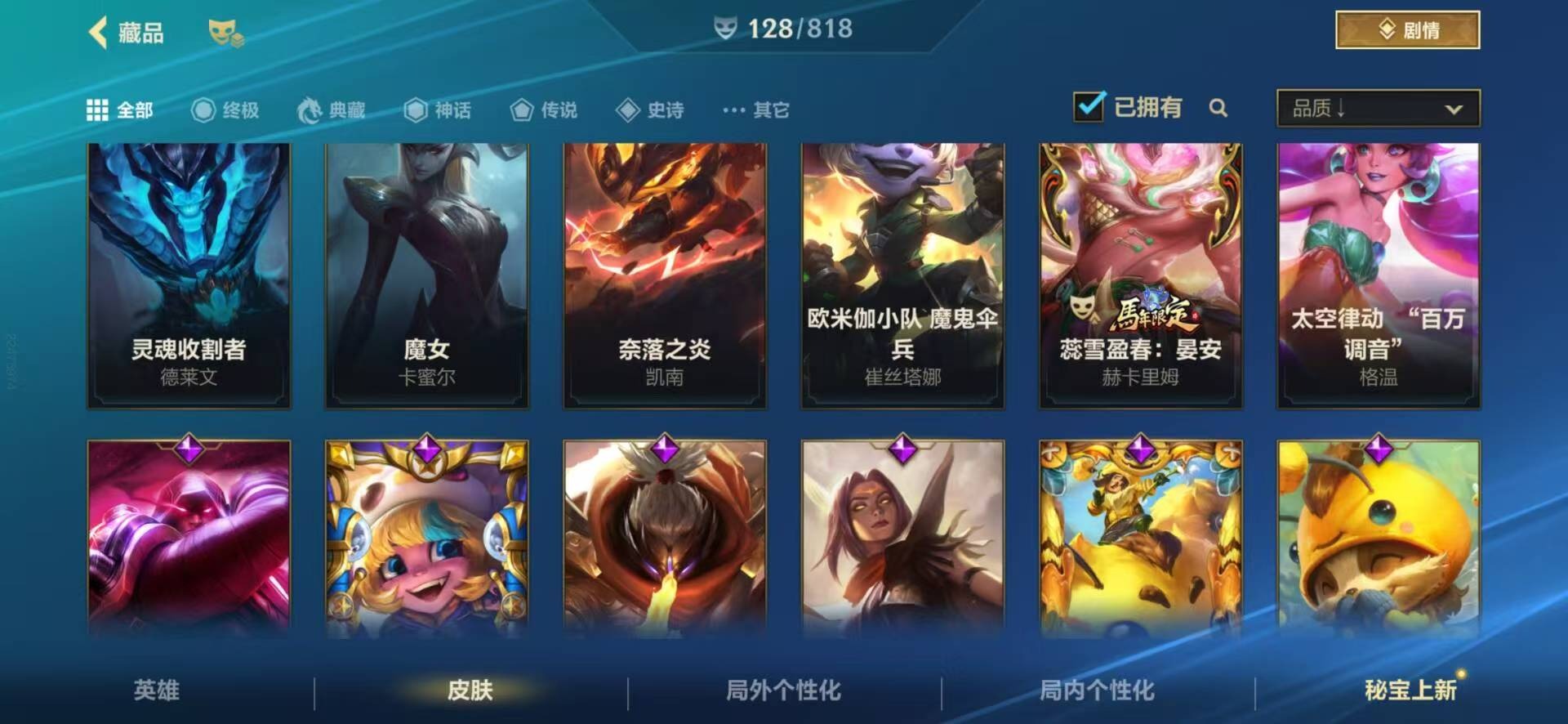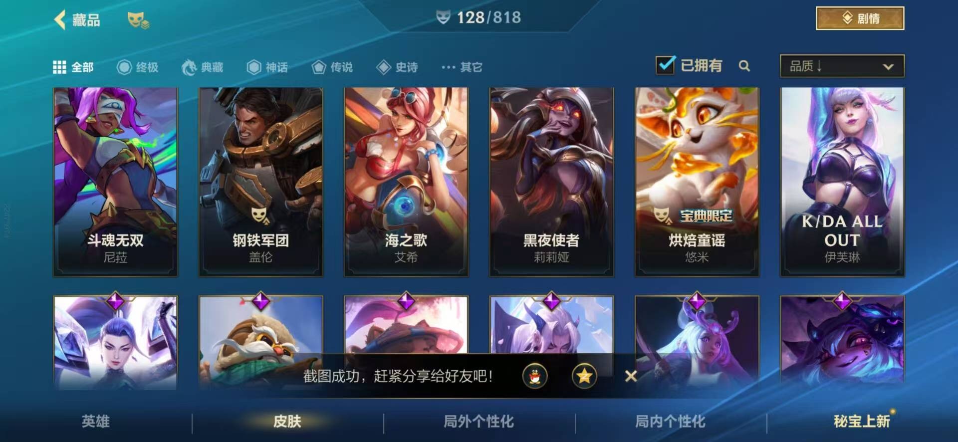3神话 2限定 12传说 48史诗 128皮肤