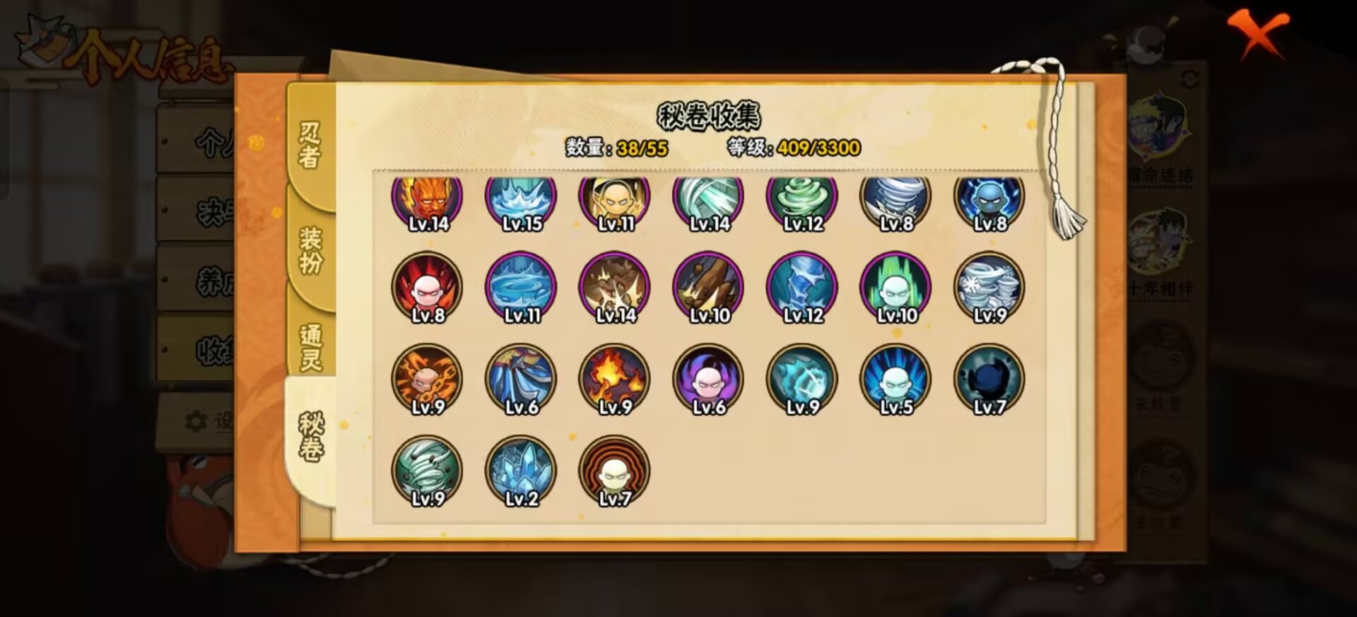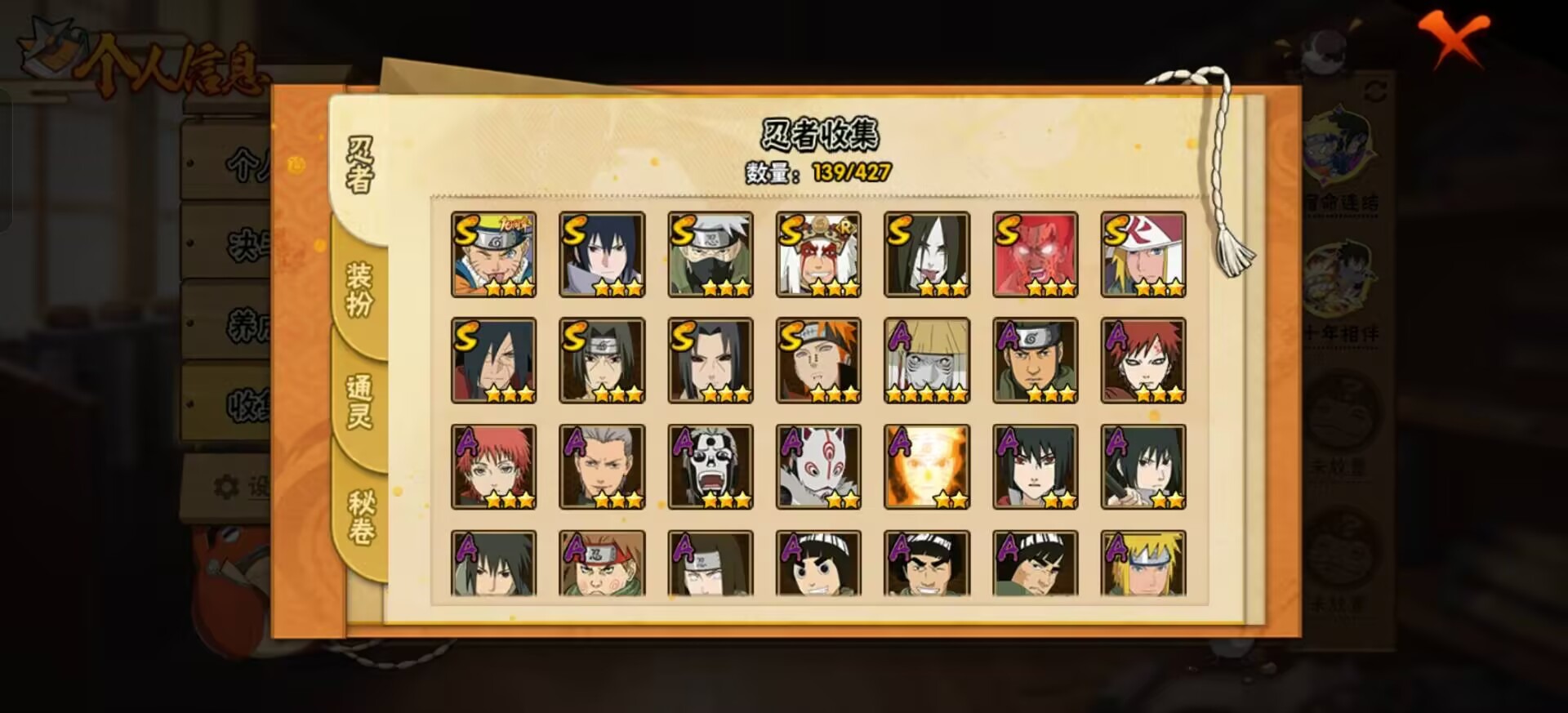【S级忍者】宇智波斑「秽土转生·解」,宇智波佐助「永恒万花筒」,迈特凯「死门」,自来也 「舞之豪杰」,旗木卡卡西「须佐能乎」,漩涡鸣人·宇智波佐助,宇智波鼬「秽土转生」,宇智波鼬 「须佐能乎」,佩恩「天道」,波风水门,大蛇丸