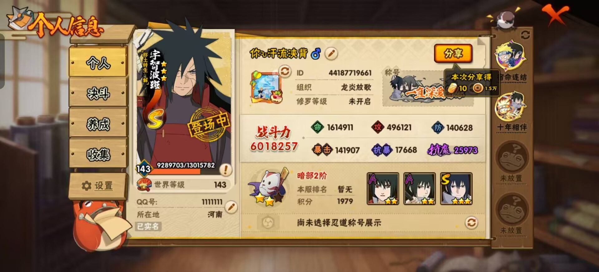 [17333247]V5 11S忍 28A忍 16通灵 601.8W战力 可二次 可修改实名