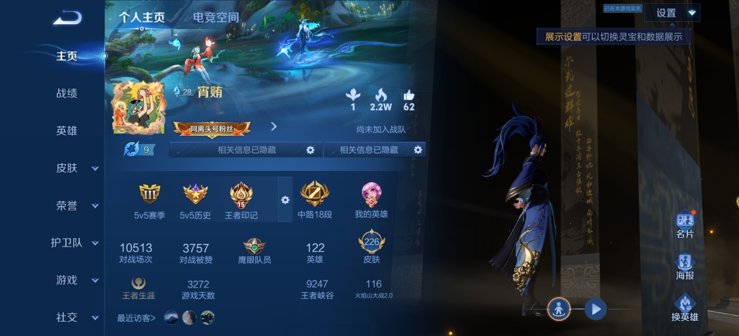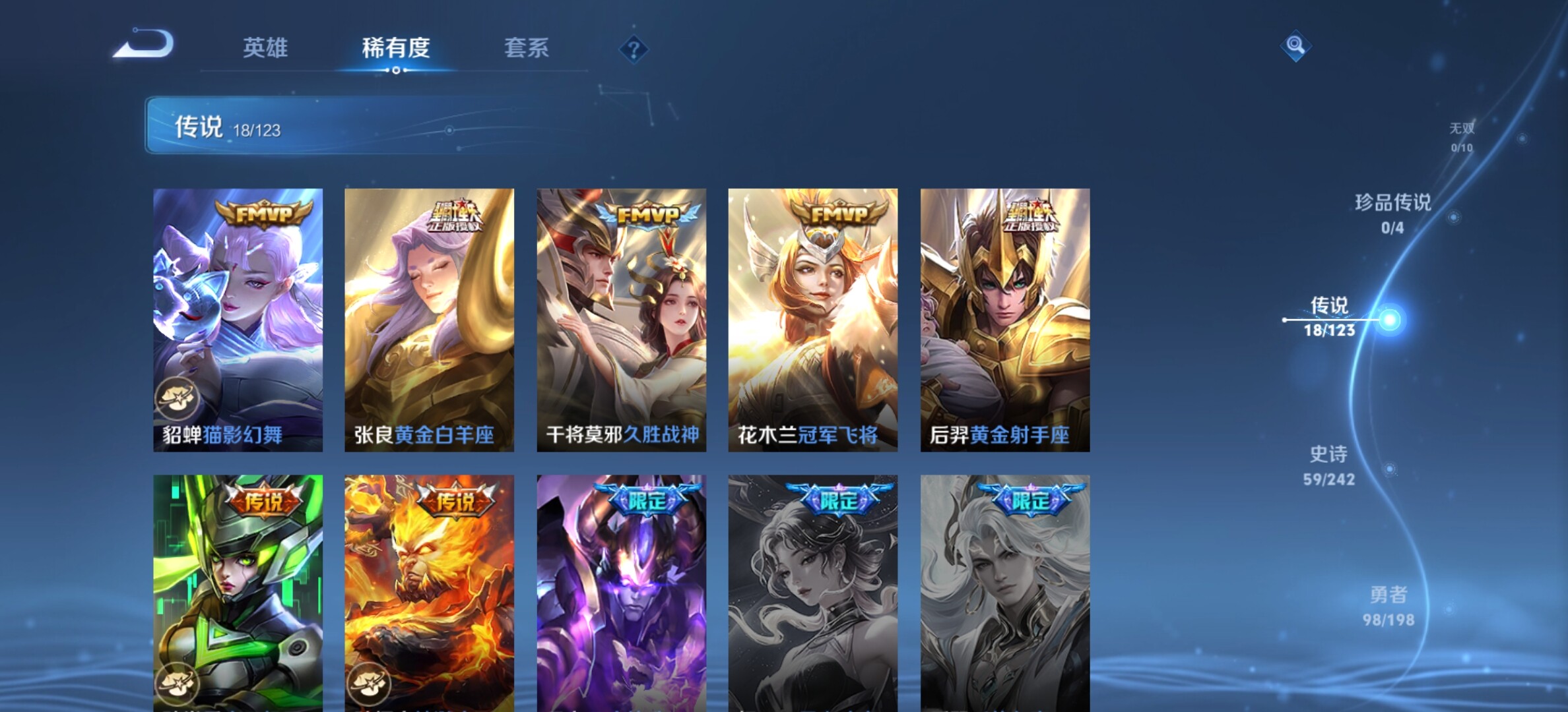 【17传说瑶时之祈愿,精品中辅号】安卓Q-V8-至尊星耀III段位-122英雄-226皮肤-1典藏-0珍品无双-0无双-0珍品传说-18传说-59史诗