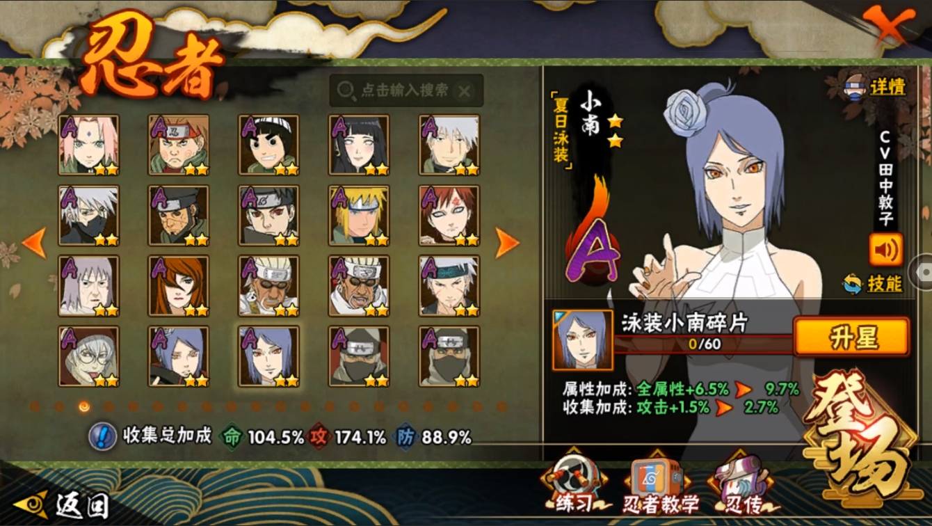 【编号24901可秒换绑】店长推荐特价处理精品号27S级忍者数-42A级忍者数【S级忍者】:长门「秽土转生」(3星),半藏「秽土转生」(3星),金角·银角「秽土转生」(3星),猿飞日斩「秽土转生」(3星),波风水门「秽土转生」(3星),千手扉间「秽土转生」(3星),千手柱间「秽土转生」(3星),宇智波鼬「秽土转生」(3星),宇智波斑「秽土转生」(3星),宇智波斑「秽土转生·解」(3星),宇智波带土「忍界大战」(3星),艾「忍界大战」(3星),宇智波止水「须佐能乎」(3星),旗木卡卡西「须佐能乎」