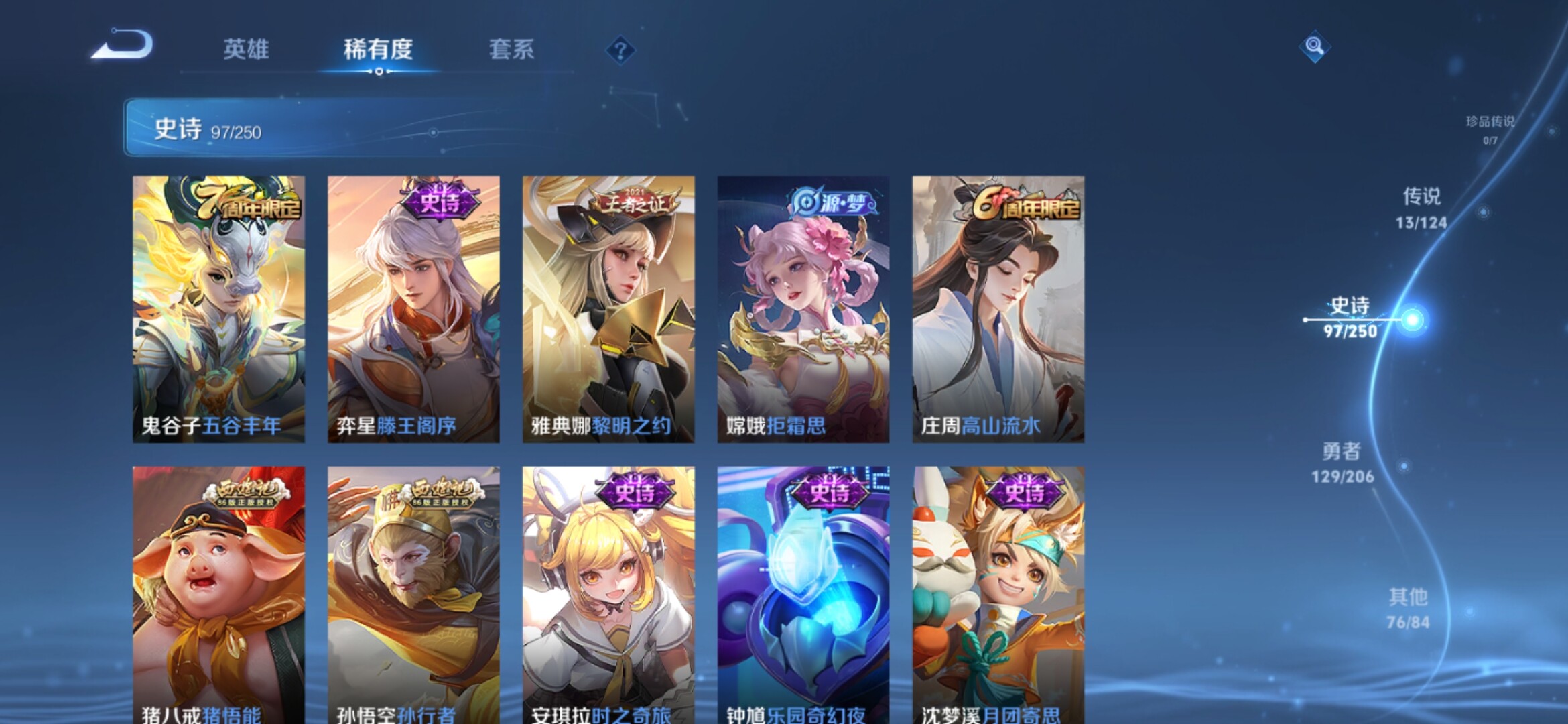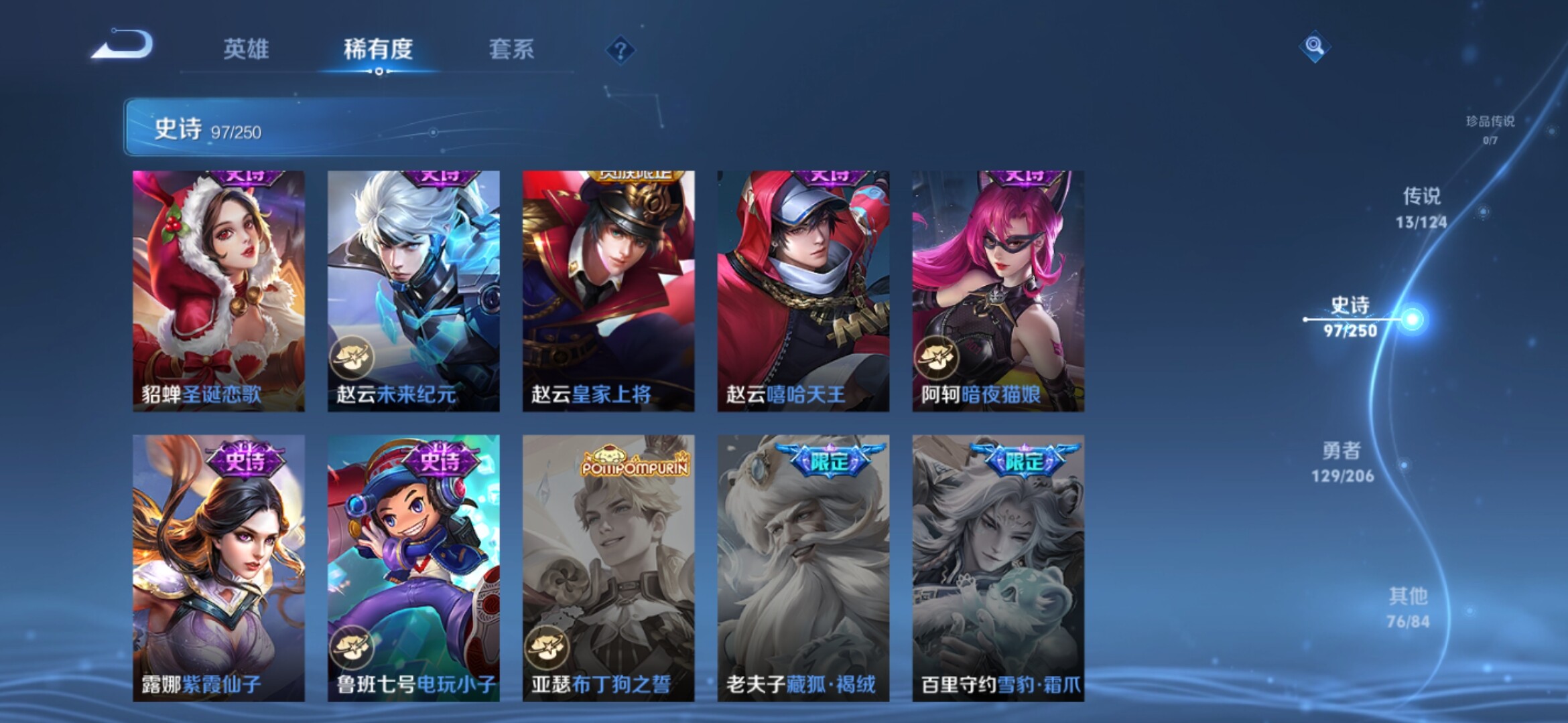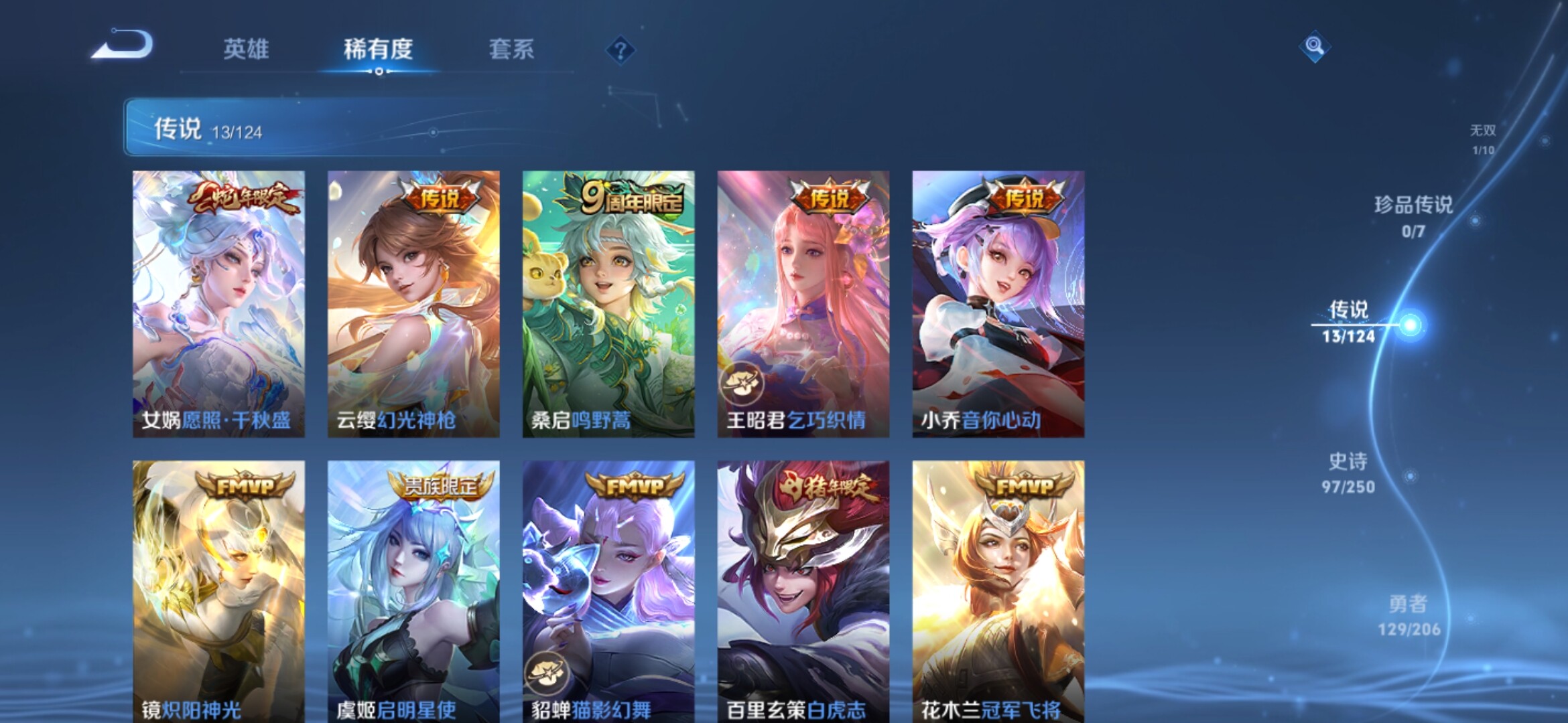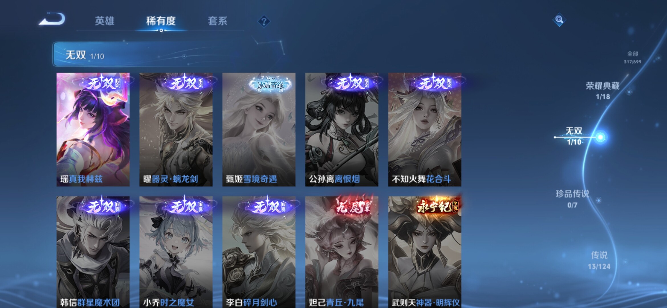 【317皮肤-2典藏-1无双-13传说 瑶真我赫兹 女娲愿照千秋盛 白虎志 至