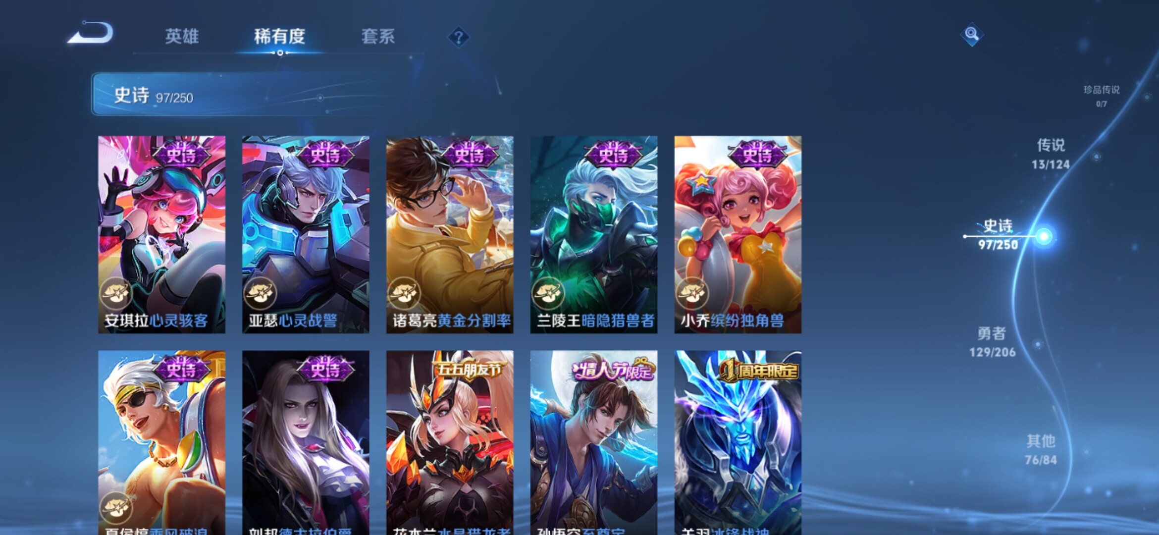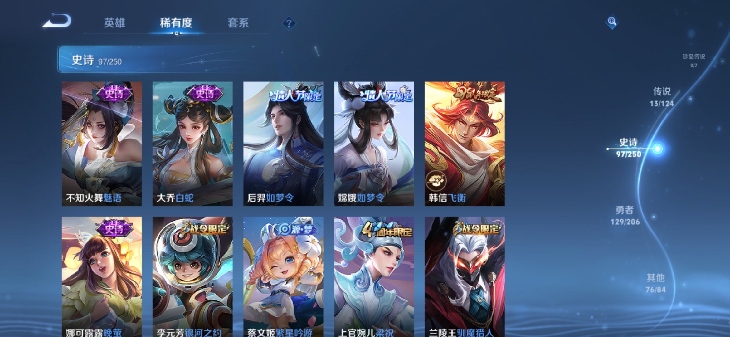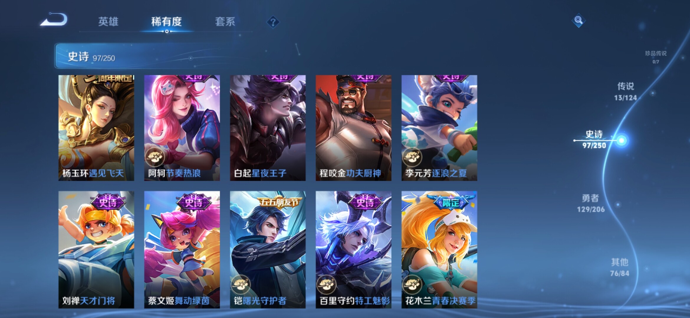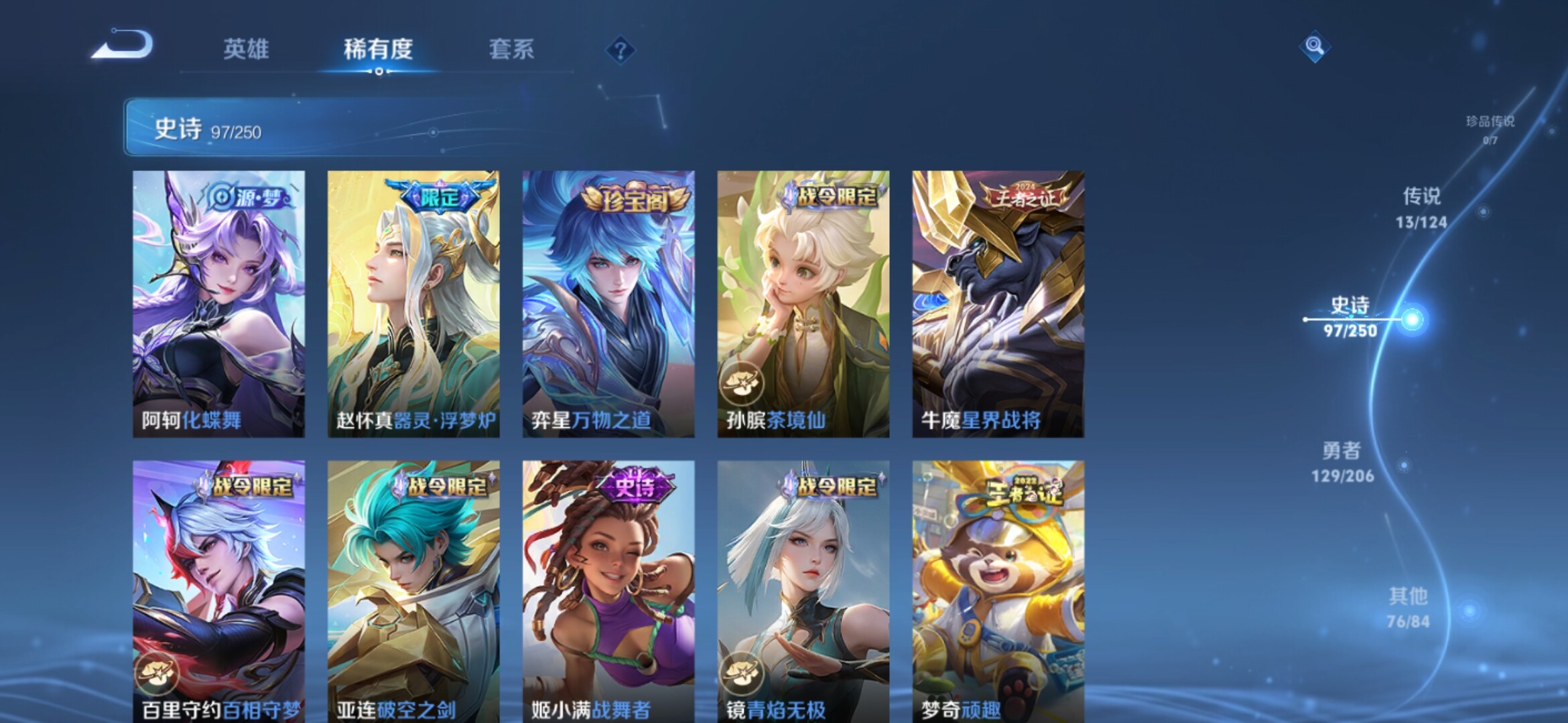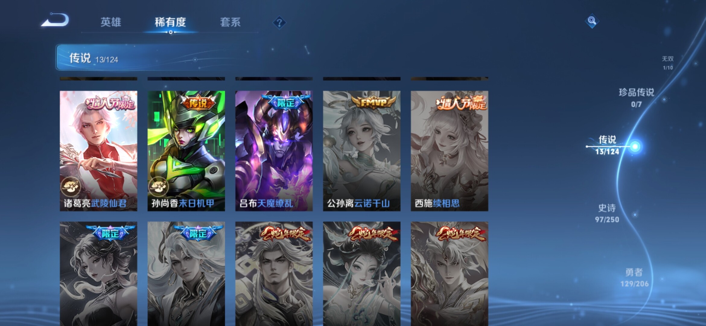 【317皮肤-2典藏-1无双-13传说 瑶真我赫兹 女娲愿照千秋盛 白虎志 至