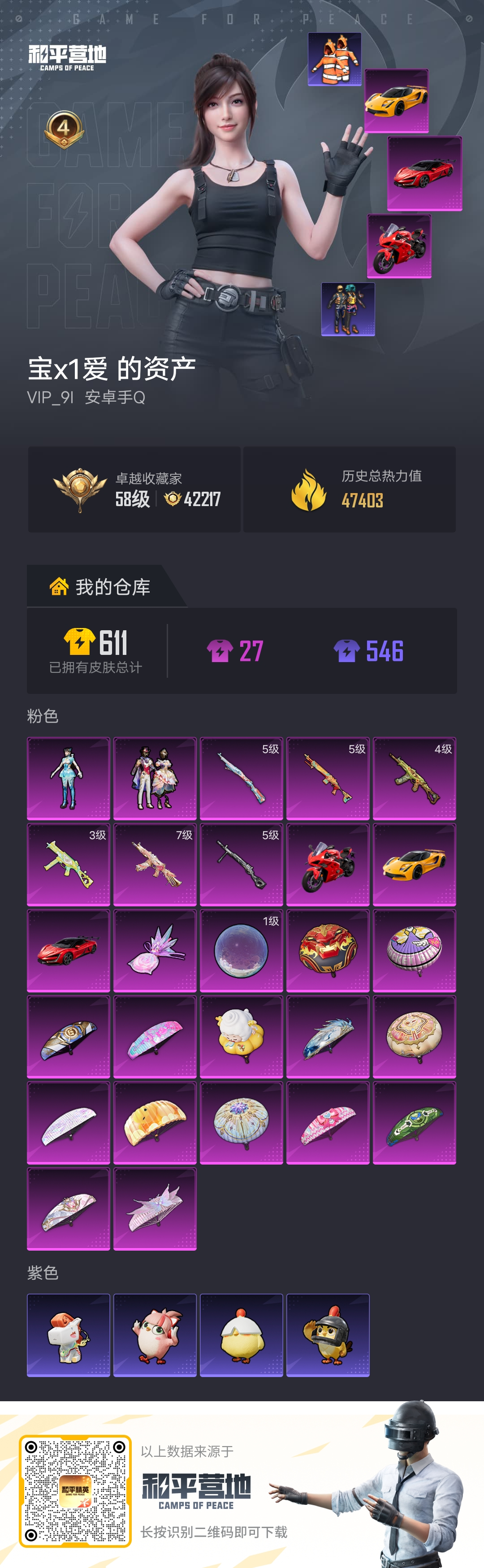 4王牌印记-2粉装-6特效枪-3载具-47532热力值-120套装-165枪皮