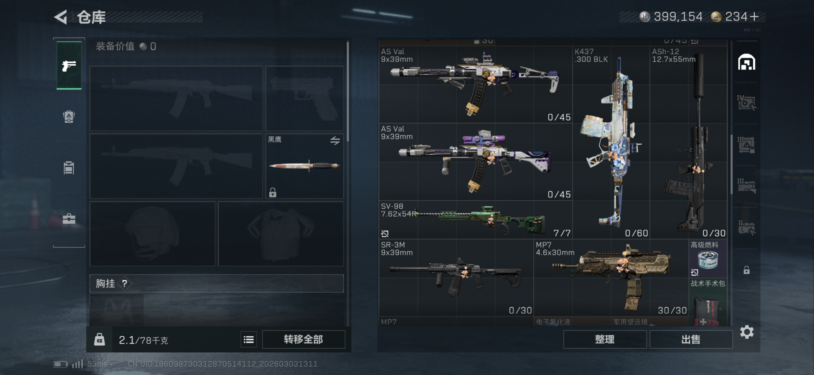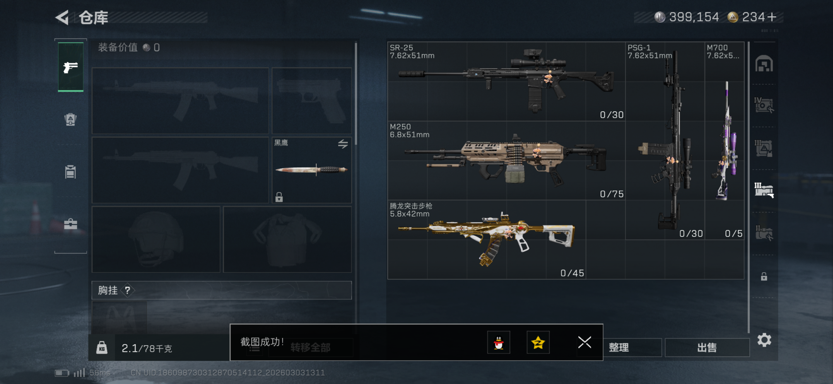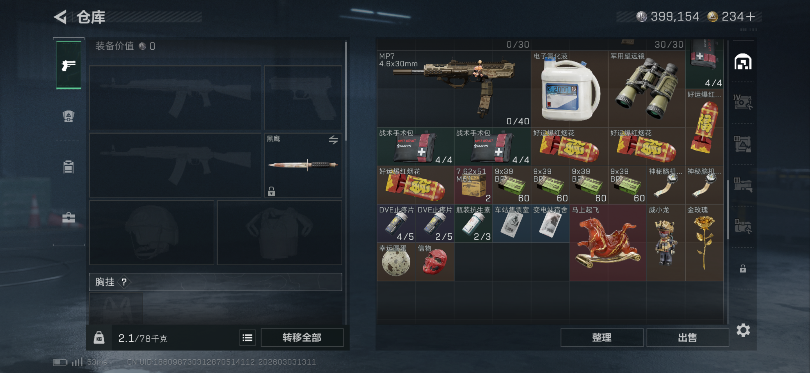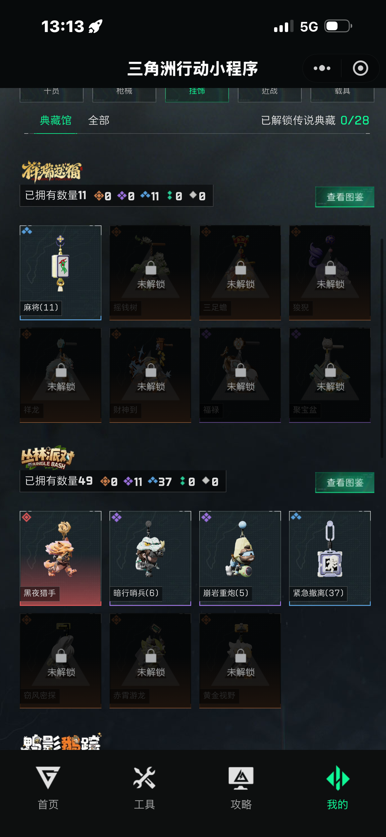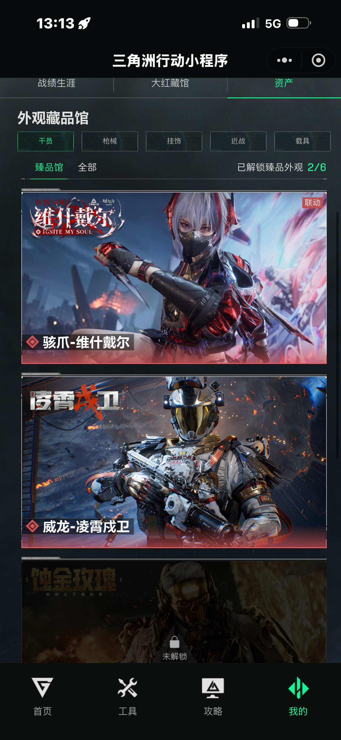 两个红皮一个红挂件,两个金皮,六套还有好几个,仓库里还有挺多大红跟一些贵的枪,枪皮都在截图里自己看,小号退游不玩了