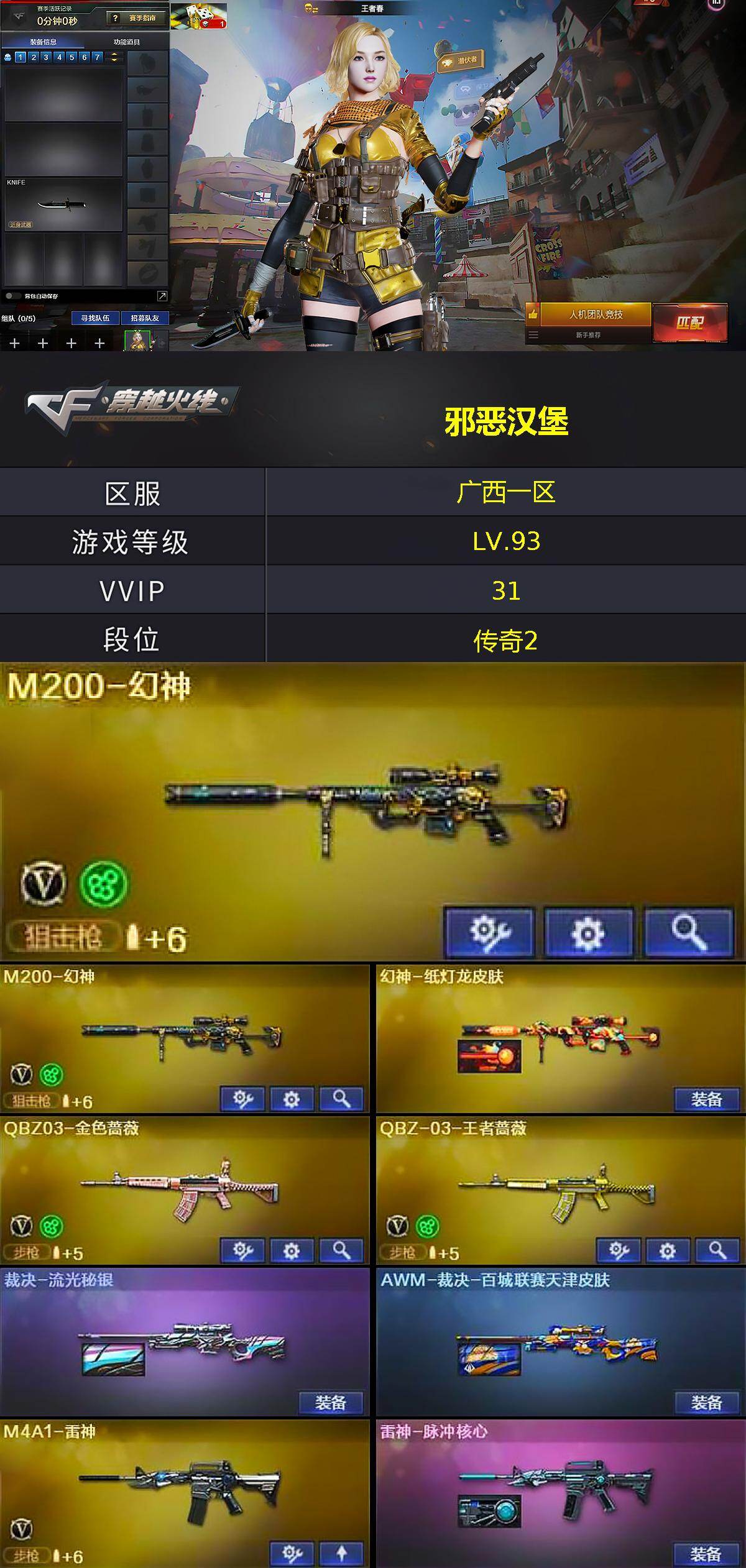 广西一区-34V-2王者武器数-1炫金武器数【热门武器】:QBZ03-金色蔷