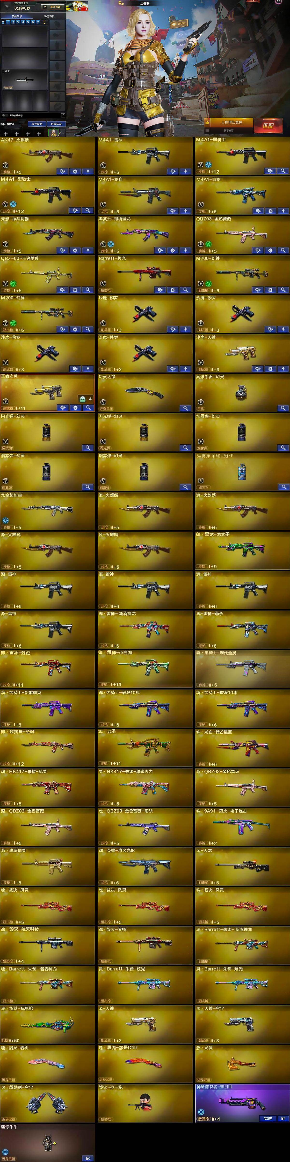 【热门武器】:QBZ03-金色蔷薇,M4A1-青龙,M200-幻神*2,M4A1-黑骑士*2,毁灭-孙三炮,沙鹰-修罗*4