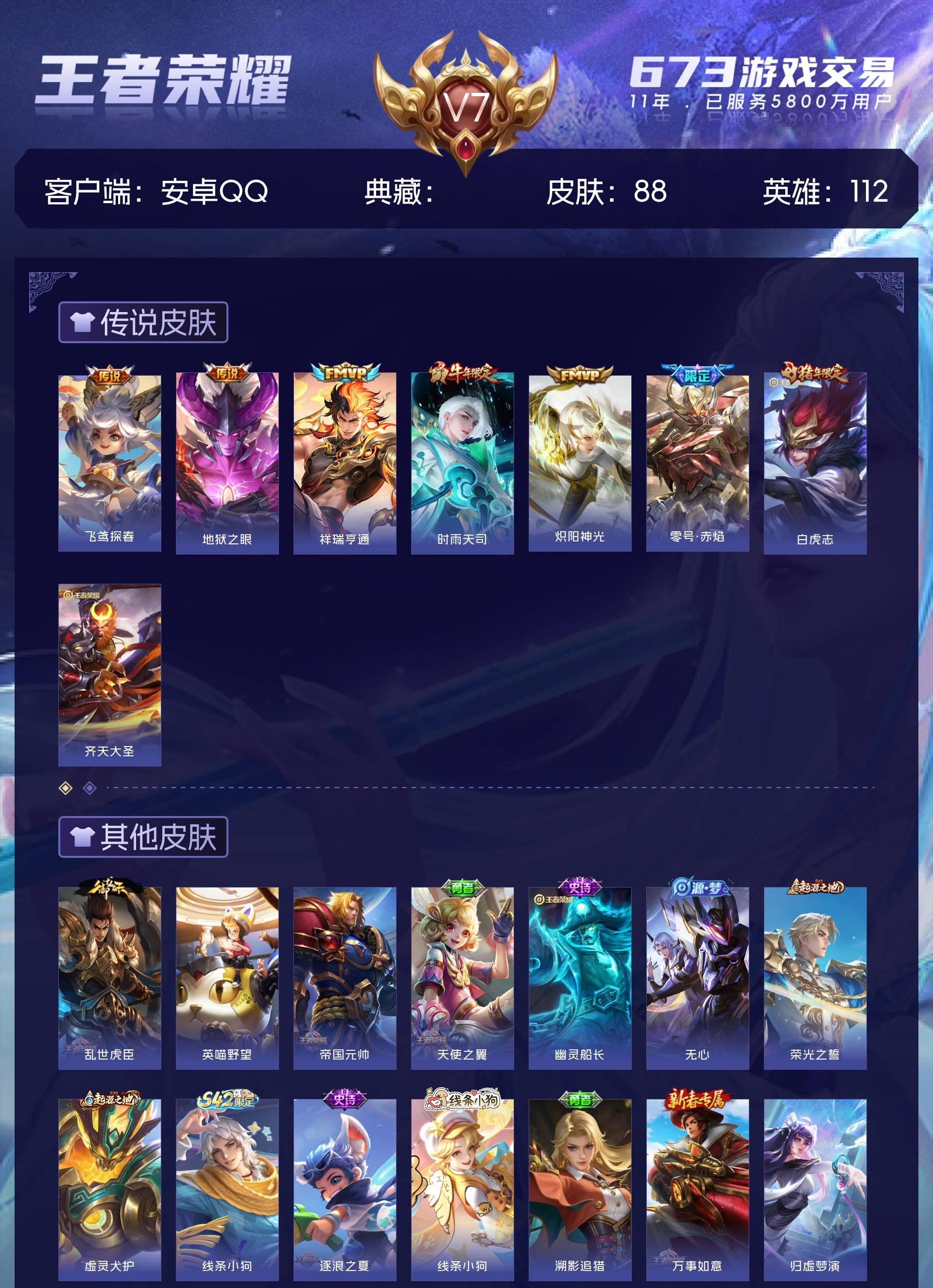 V7 皮肤88 英雄112 绝世王者 传说8 其他皮肤87