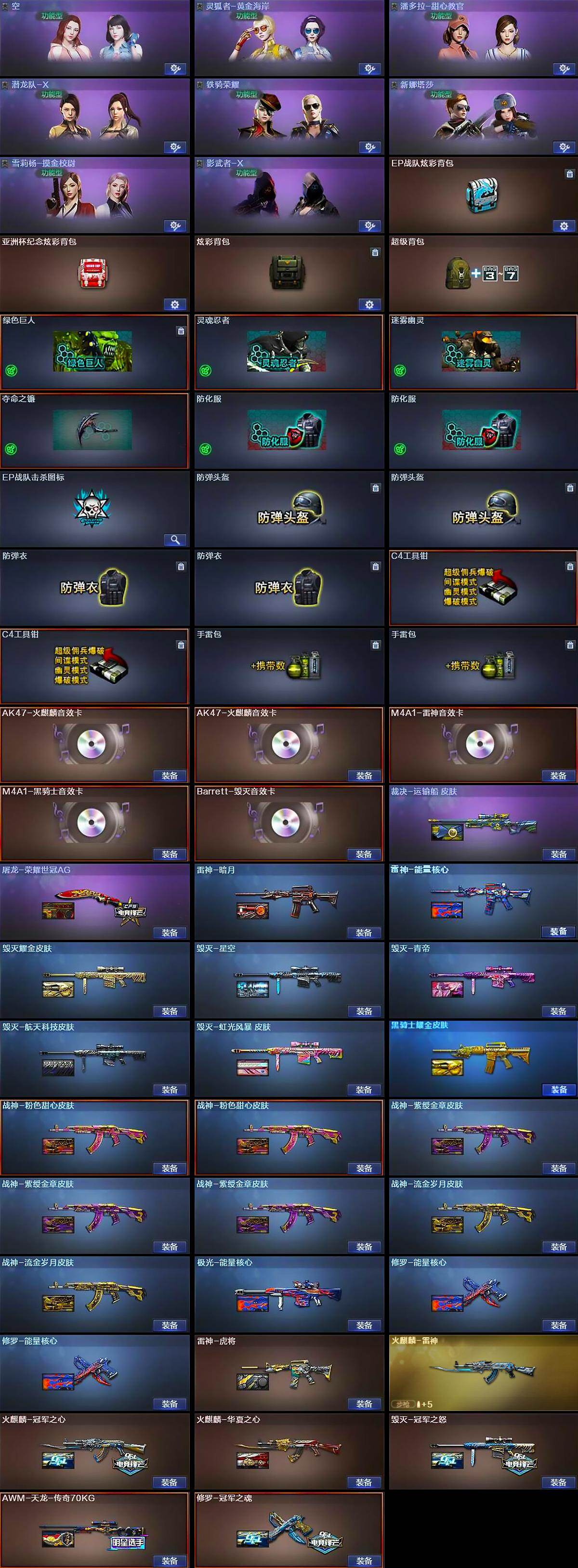 【音效卡】:AK47-火麒麟音效卡*2,M4A1-雷神音效卡,M4A1-黑骑士音效卡,Barrett-