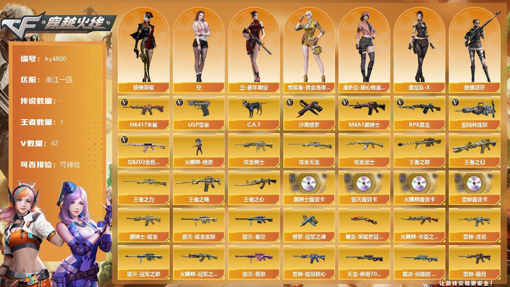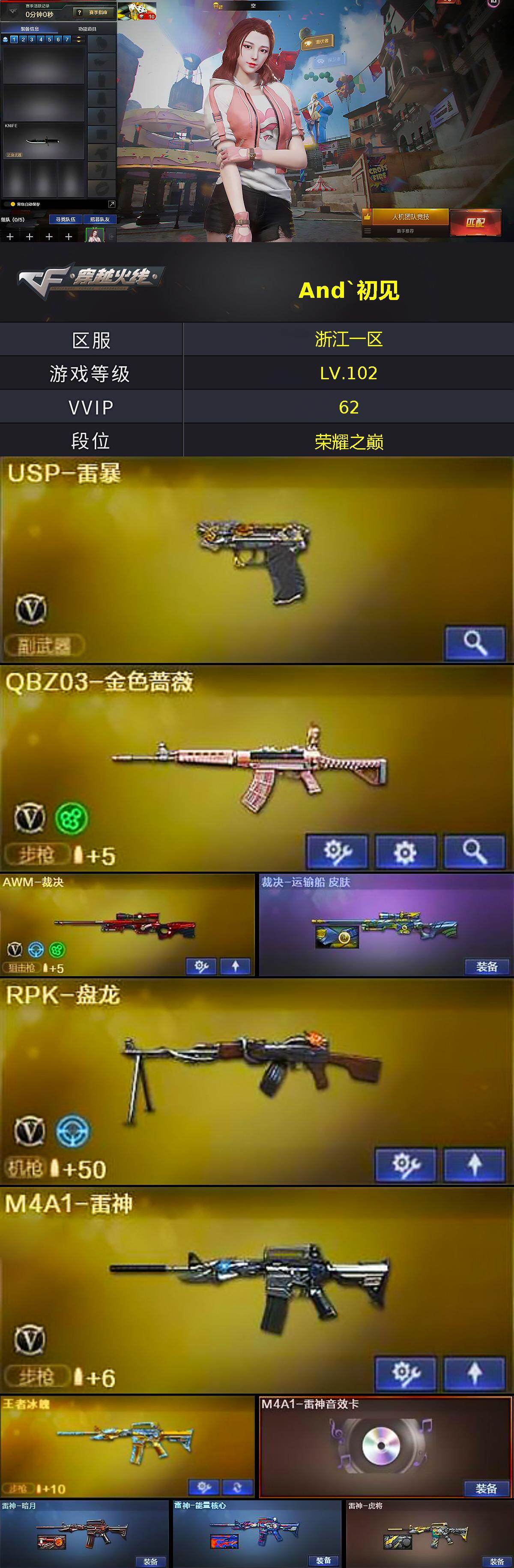 浙江一区-62V-7王者-3炫金【热门武器】:QBZ03-金色蔷薇,HK41