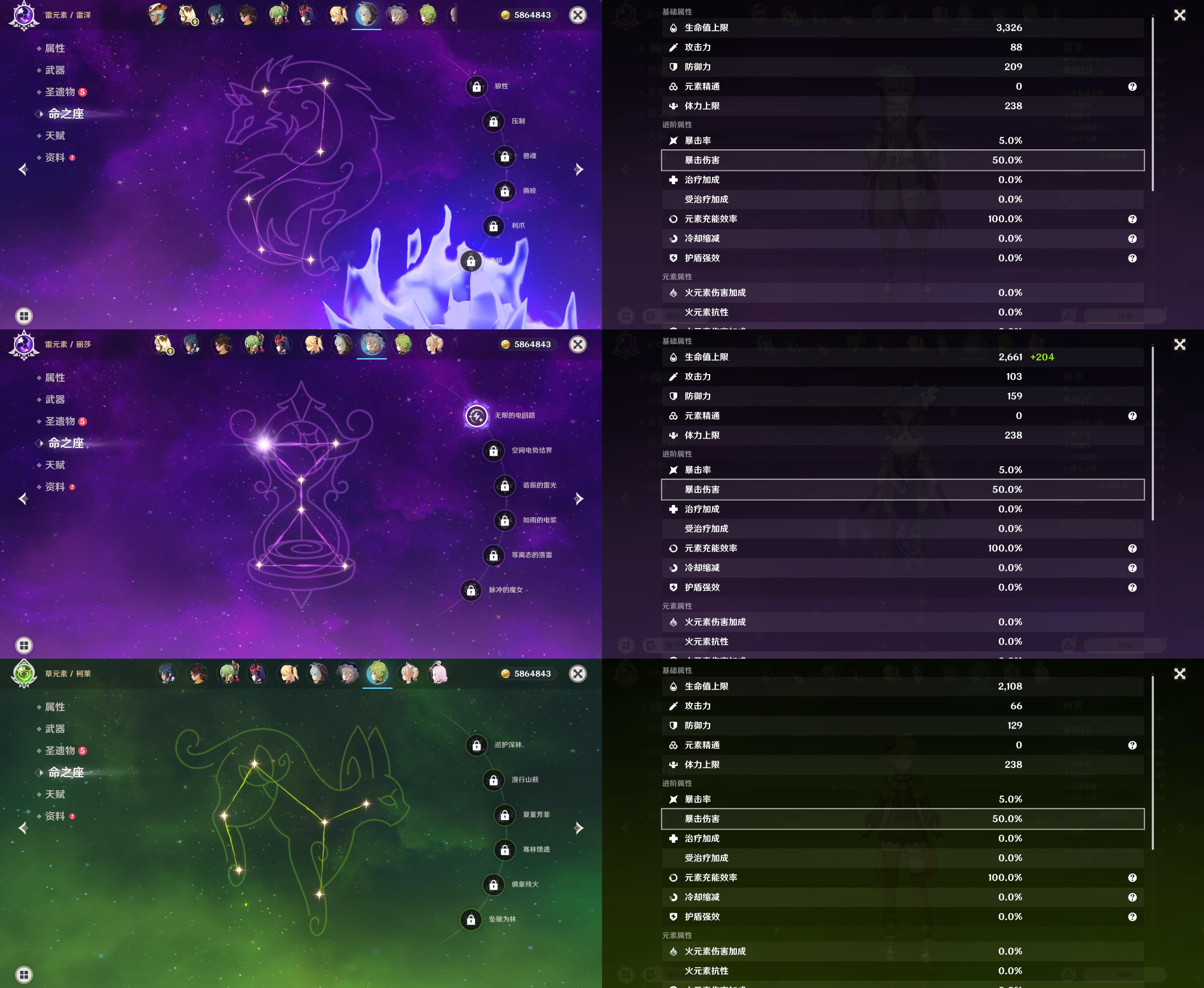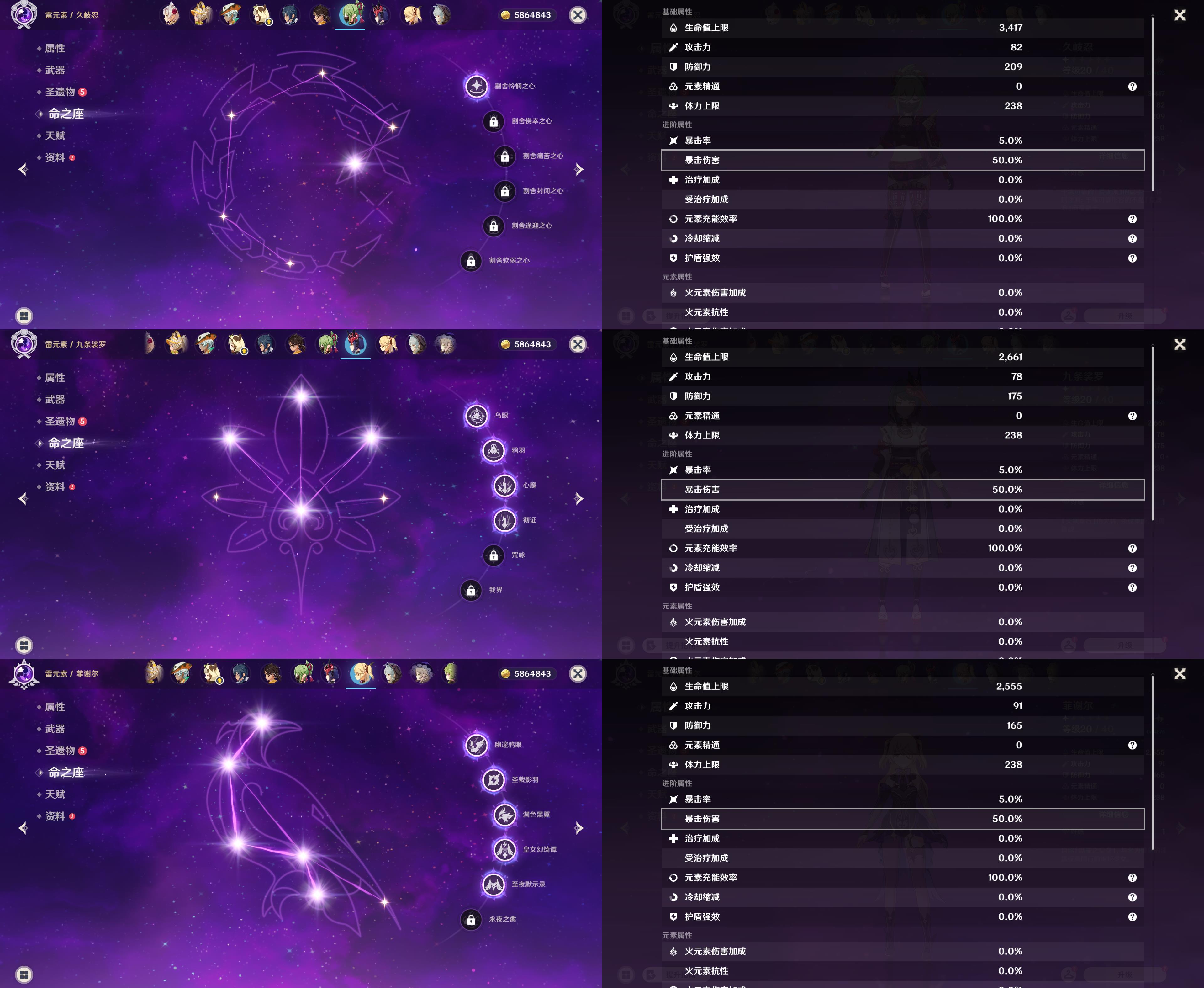 55级/21黄/女主/13个五星角色/2个五星武器/1命八重神子/1