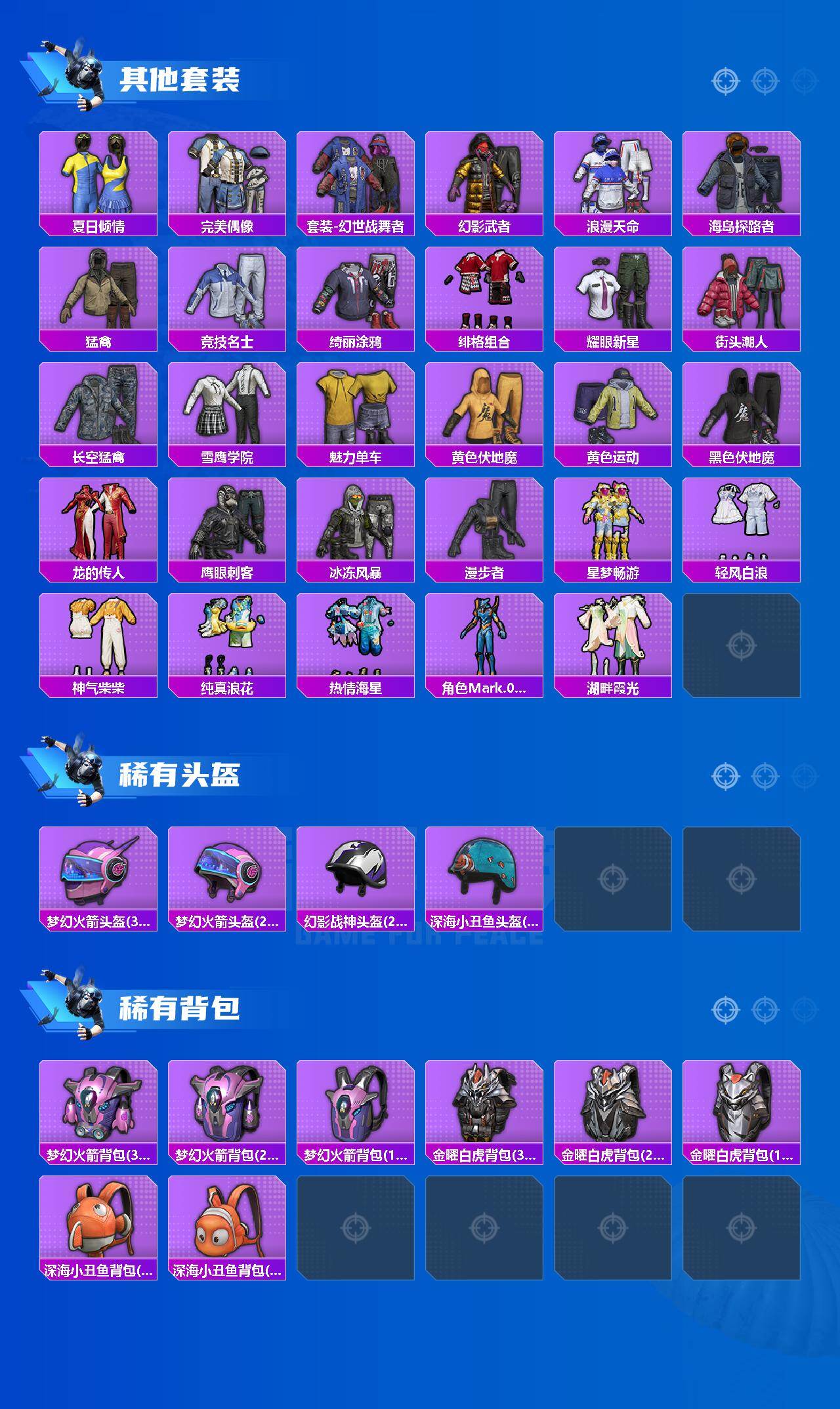 【热门品类】:粉装-梦幻火箭,套装-浪漫天命,套装-都市猎人,角色-Mark.06
