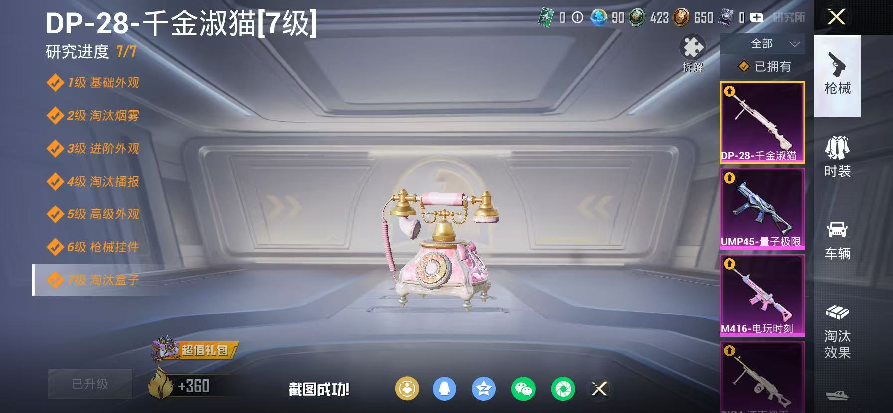 493-可二次【16粉装8特效枪1载具】 苹果V区-55120热力值-6印记-118套装-150枪皮 【1载具】 宝马M4(圣保罗黄)【16粉装】 角色-小蓝 角色-美雪 角色-美琪 角色-严莉莉 白兰星 第五大道 彩虹鹿灵 旋转彩虹 甜梦小狐 呆萌星弥 冰川幽秘 角色-智趣喵喵 角色-电磁星 角色-绯穹魔姬 角色-千金淑猫 角色-晶梦幻蝶【8特效枪】 SCAR-L-锦绣绵绵(5级) M416