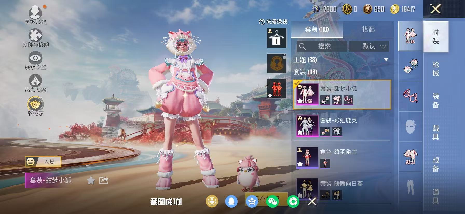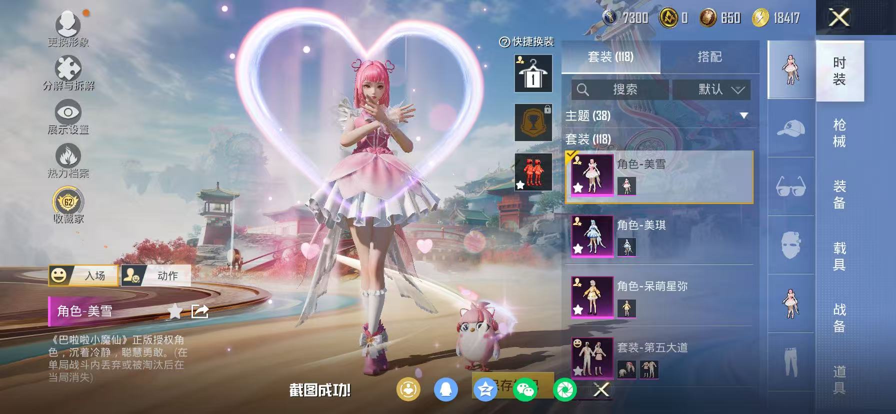 862-可二次【16粉装8特效枪1载具】 苹果V区-55120热力值-6印记-118套装-150枪皮 【1载具】 宝马M4(圣保罗黄)【16粉装】 角色-小蓝 角色-美雪 角色-美琪 角色-严莉莉 白兰星 第五大道 彩虹鹿灵 旋转彩虹 甜梦小狐 呆萌星弥 冰川幽秘 角色-智趣喵喵 角色-电磁星 角色-绯穹魔姬 角色-千金淑猫 角色-晶梦幻蝶【8特效枪】 SCAR-L-锦绣绵绵(5级) M416-电玩时刻(5级) UMP45-量子极限(5级) PKM-江南烟雨(6级) DP-28-千金淑猫(7级)