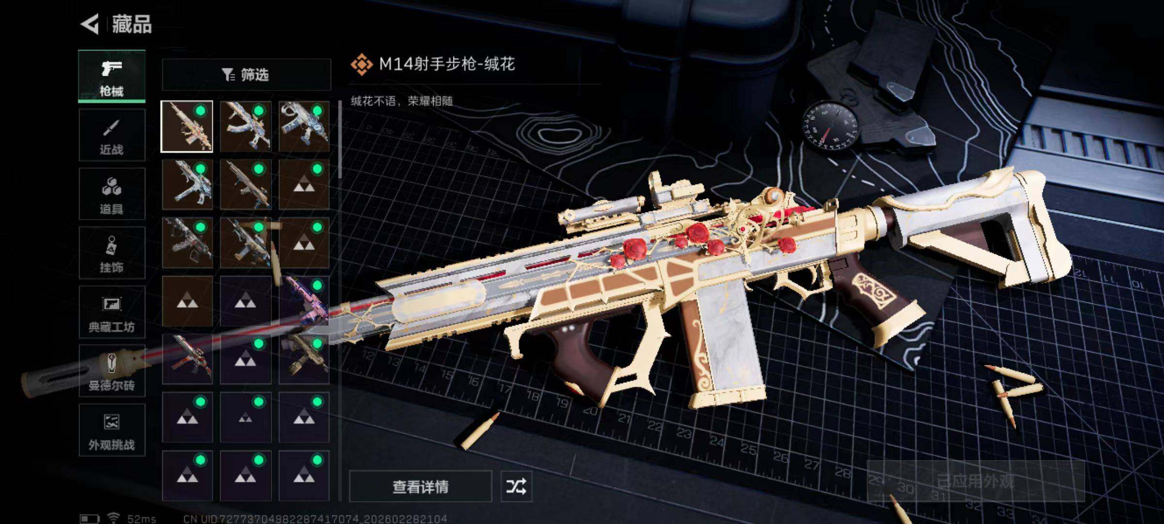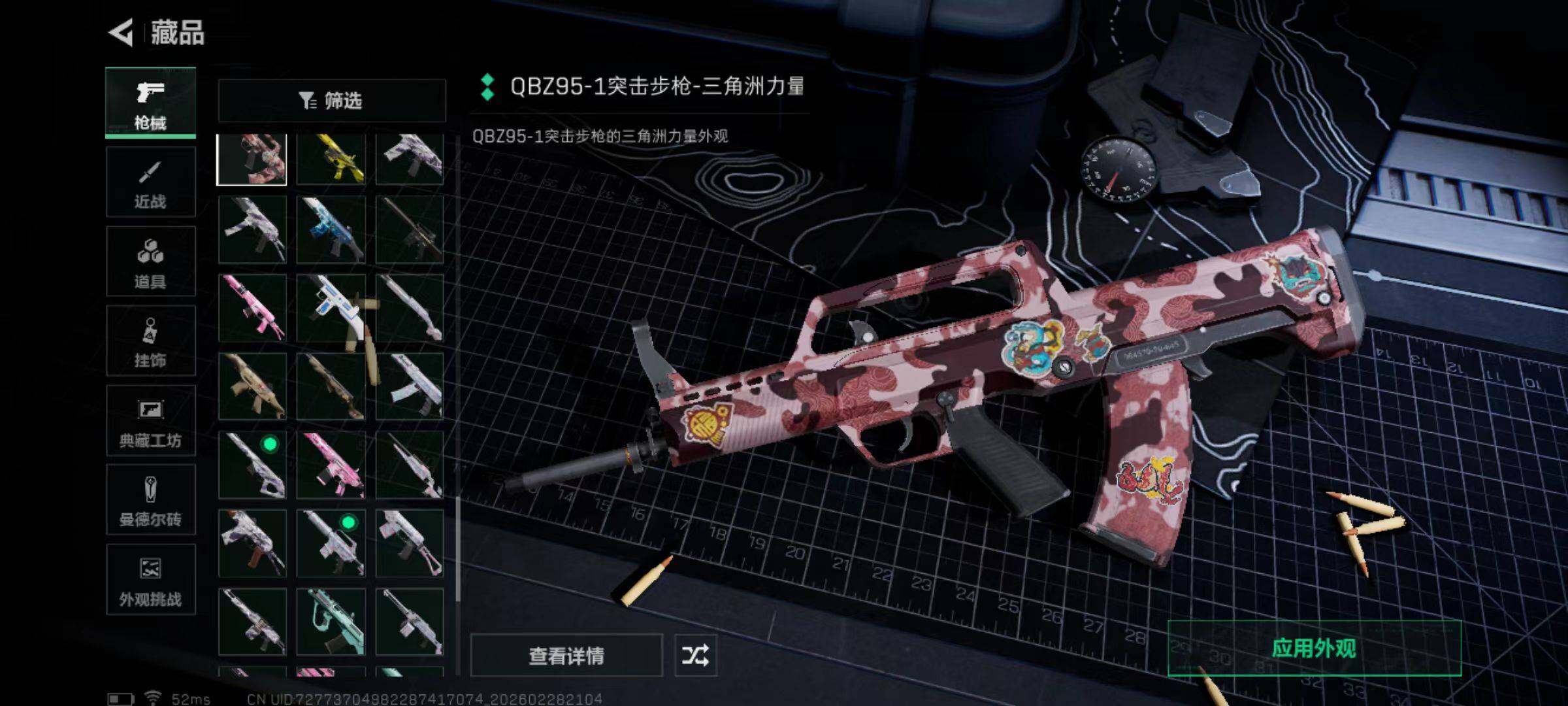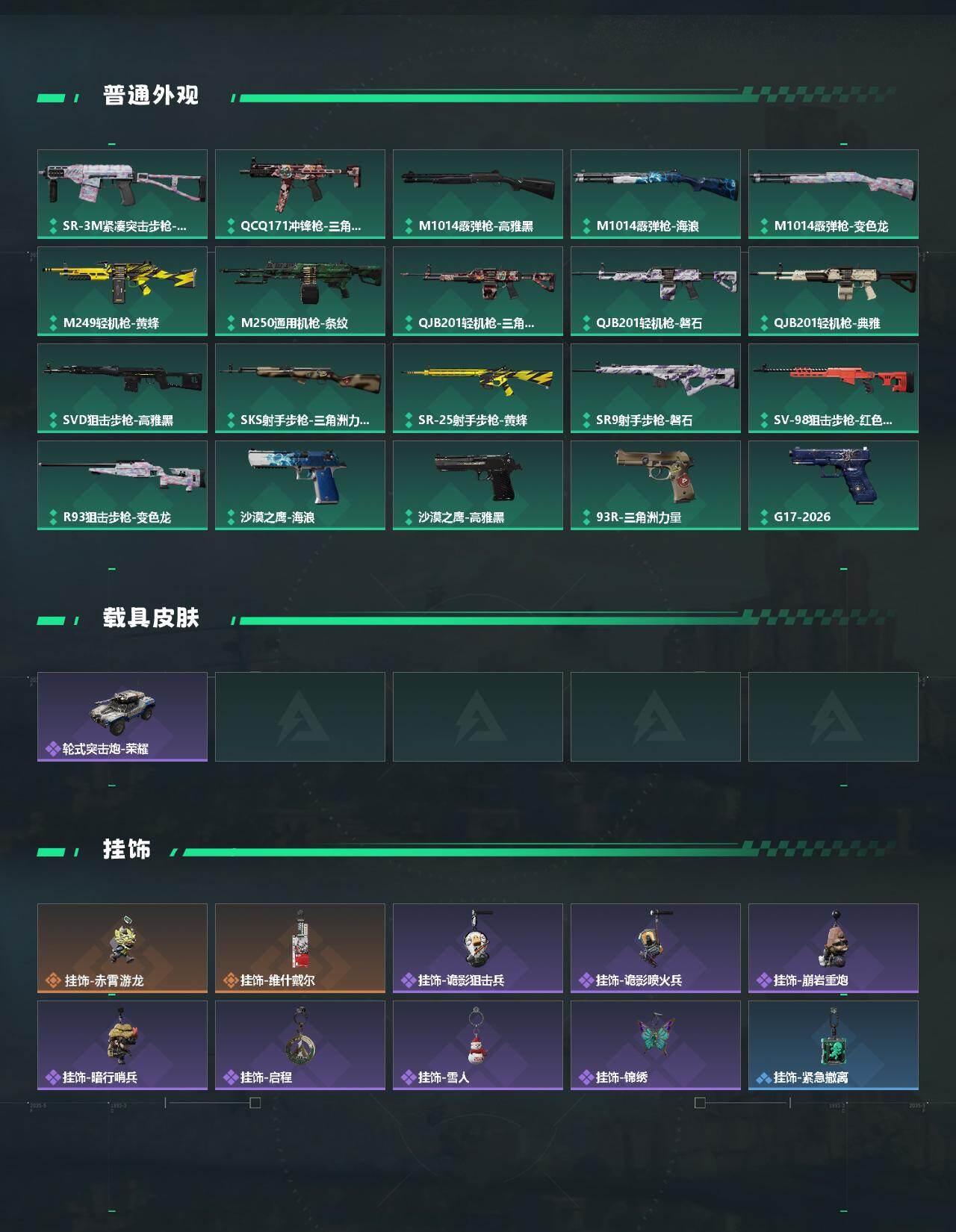 总资产(M):42M/哈夫币(K):479K/哈夫币(K):479K/传说枪皮数:10/全面战场等级:11_段位:列兵/烽火地带等级:60_段位:黄金/骇爪-水墨云图/露娜-金牌射手/近战-黑鹰/AKM突击步枪-锦绣/SG552突击步枪-运动员/SCAR-H战斗步枪-水墨云图/SCAR-H战斗步枪-启航/K437突击步枪-锦绣/KC17突击步枪-电锯惊魂/SMG-45冲锋枪-锦绣/M14射手步枪