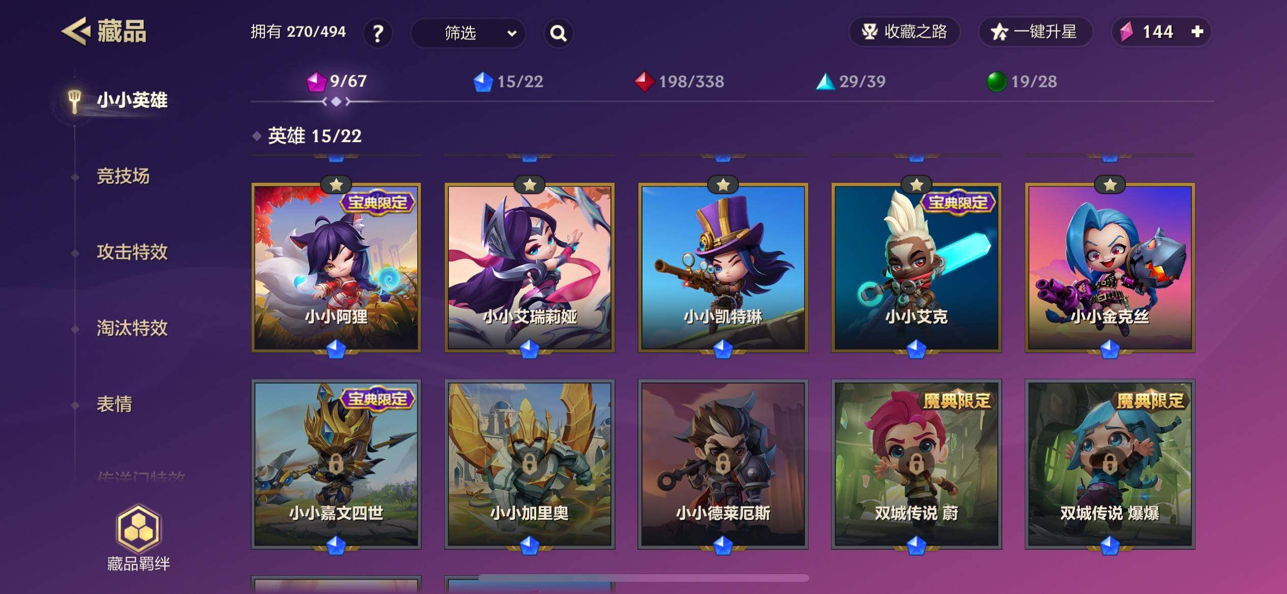【神话小小英雄】:K/DA ALL OUT 小小卡莎,K/DA ALL OUT 小小伊芙琳,年糕鱼仙子 小小卡莎,小小哞利斯塔,柯基 小小库奇,大师 小小永恩,福星 小小塔姆 纳财大帝,至高之拳 小小李青,烈焰美人 小小薇恩