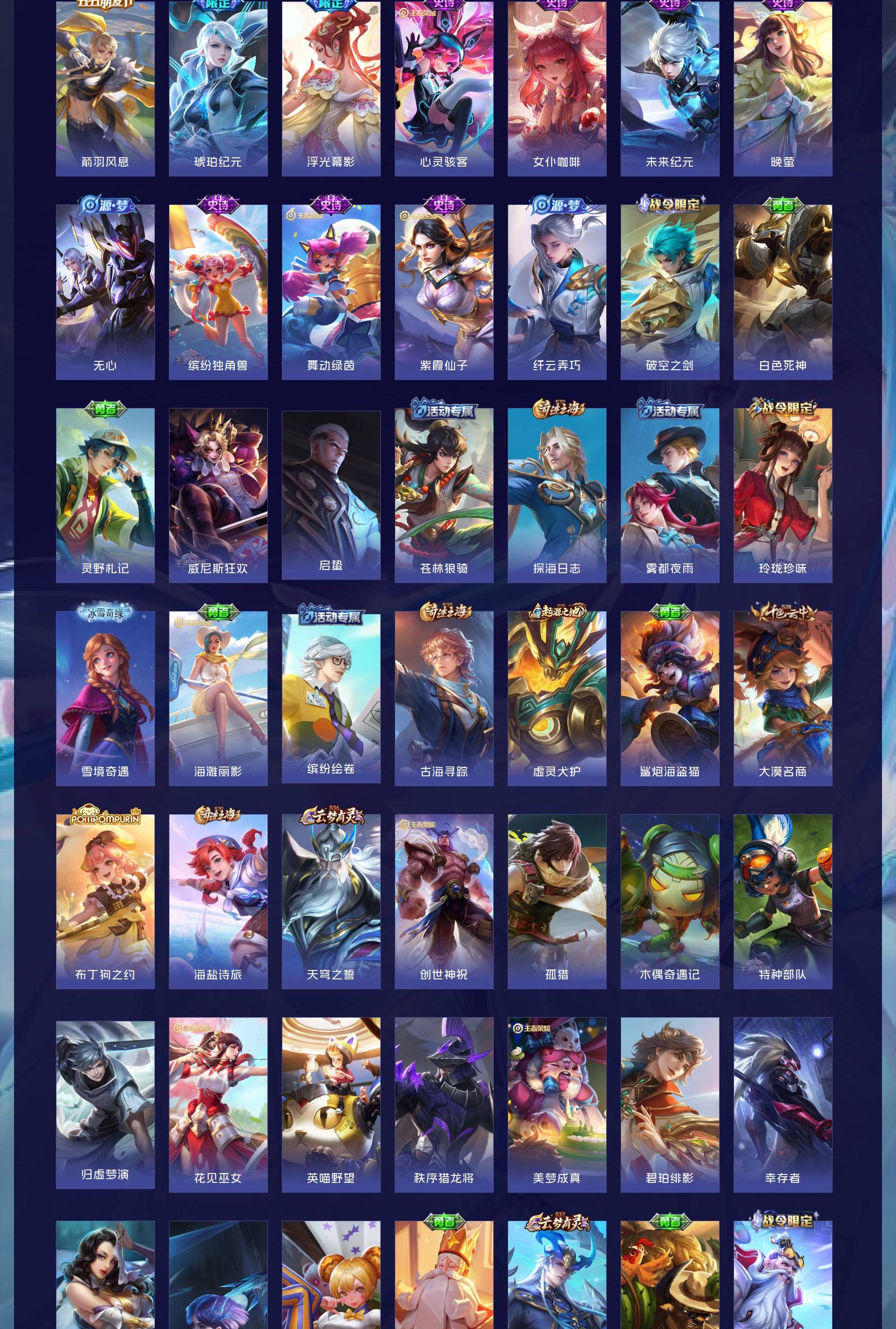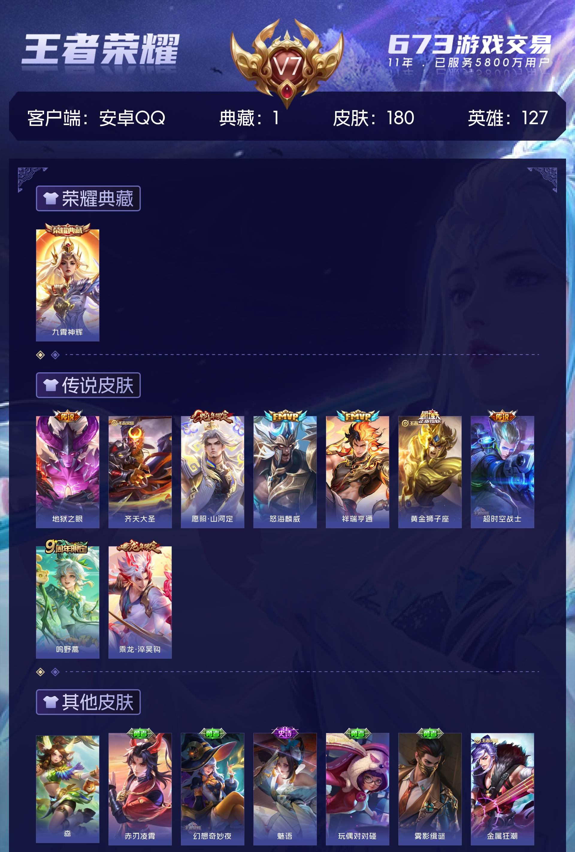 V7 皮肤180 英雄127 永恒钻石 荣耀典藏1 传说9 其他皮肤177
