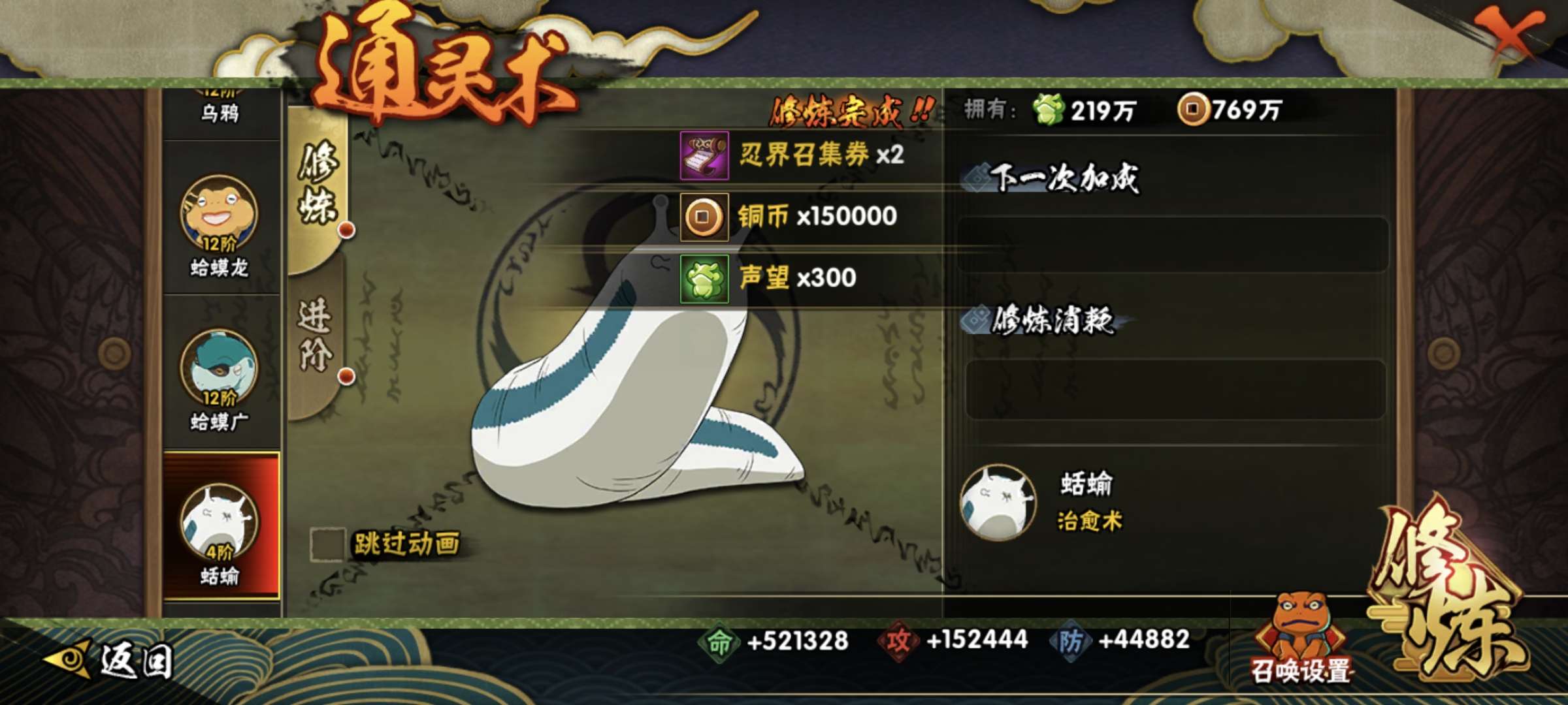 还有一万多金币,有蛞蝓,还有86片仙人自来也