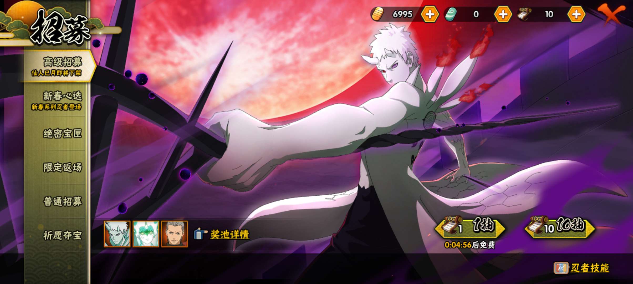 还差30片六道带土,3月高招A能带出来巳月和迪达拉可以选