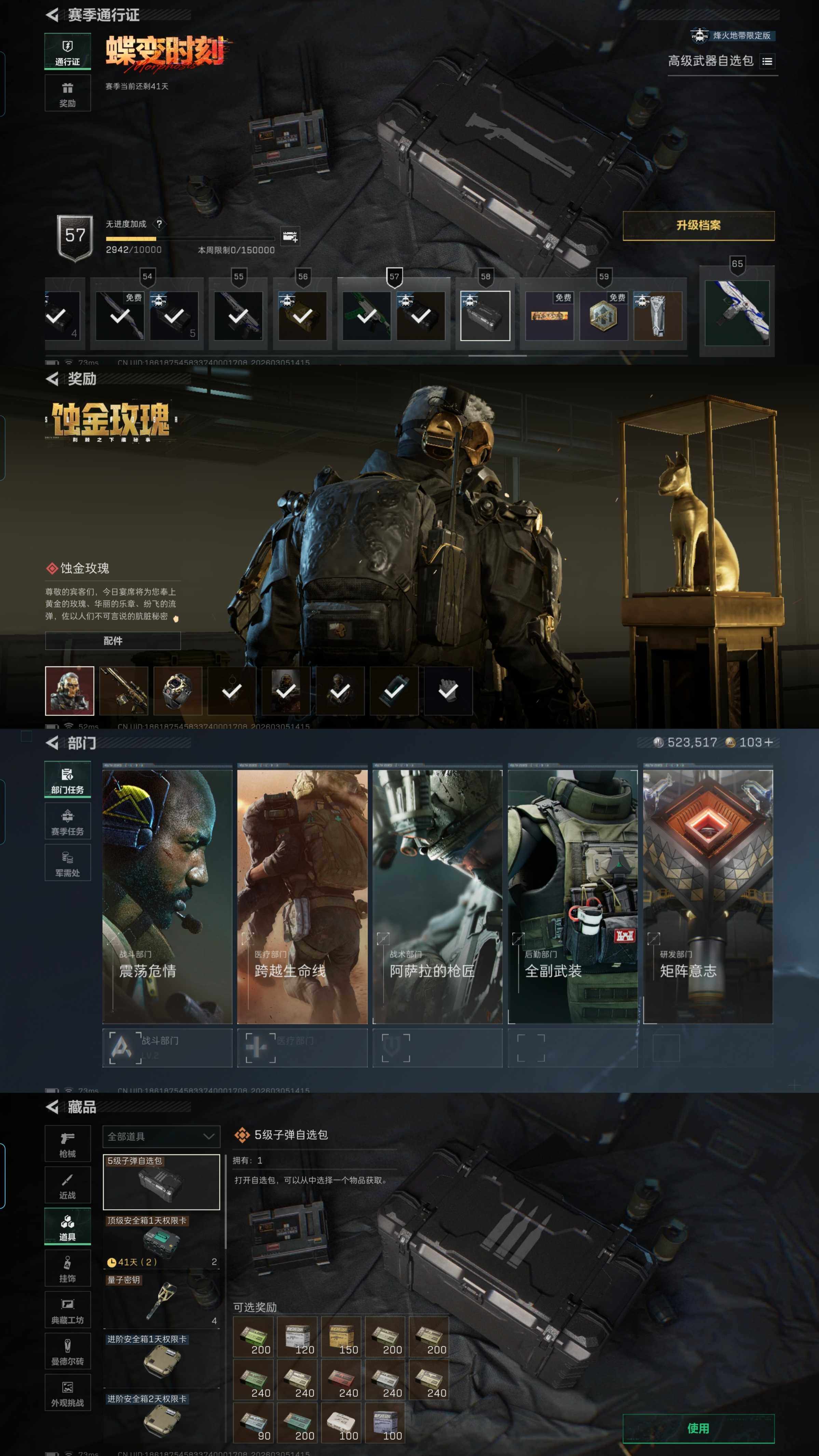 ab08,信条处刑者刀皮,凌霄戍卫骇爪红皮电锯金牌射手皮肤,总资产12M,17橙枪,6格,6金挂饰,蚀金玫瑰差3发,仓库4级训练中心6级靶场3级