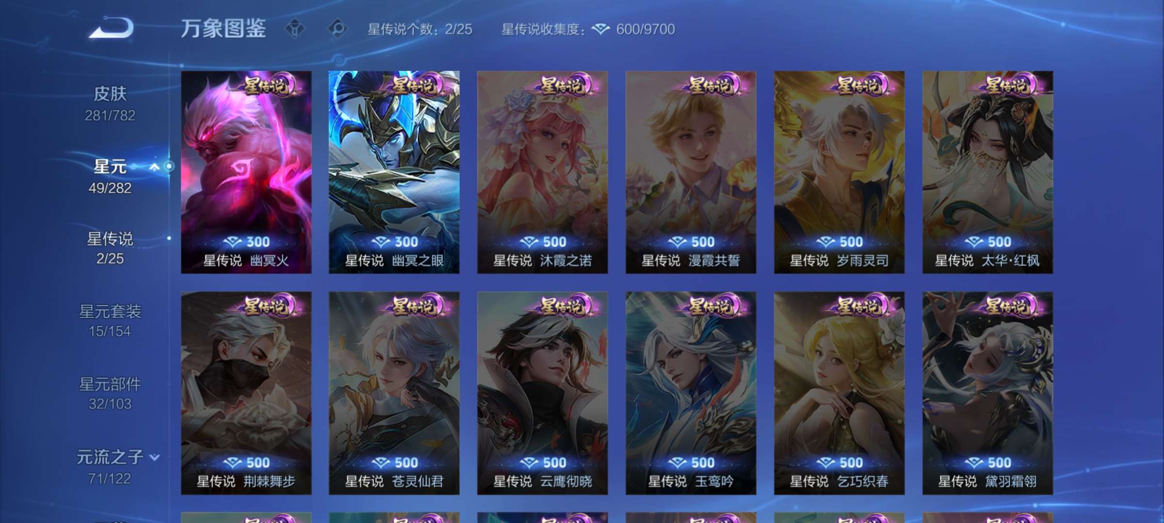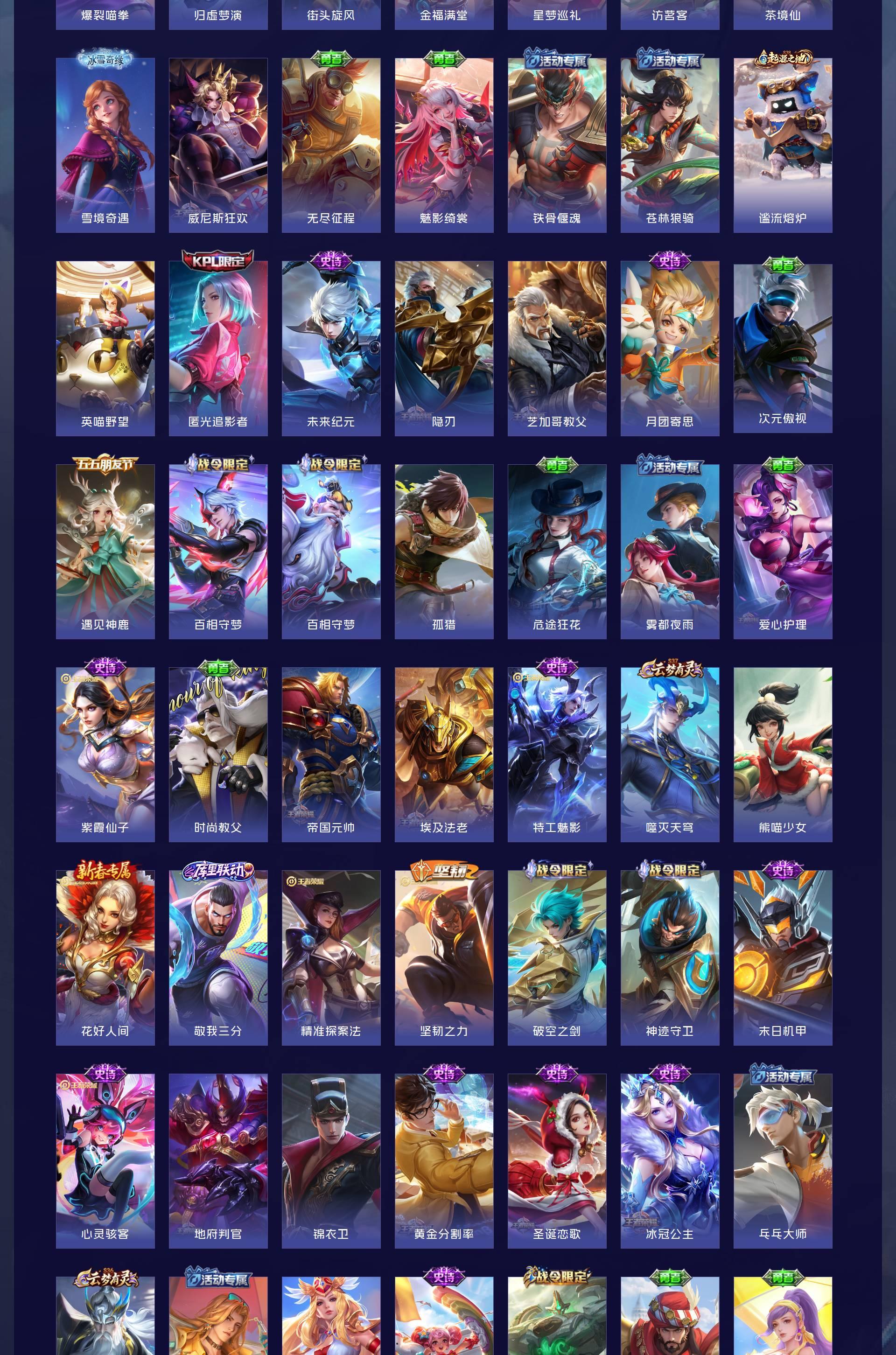 V7 皮肤281 英雄128 至尊星耀 珍品传说1 星传说2 传说12 其他皮肤275