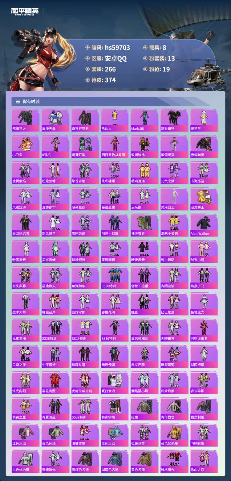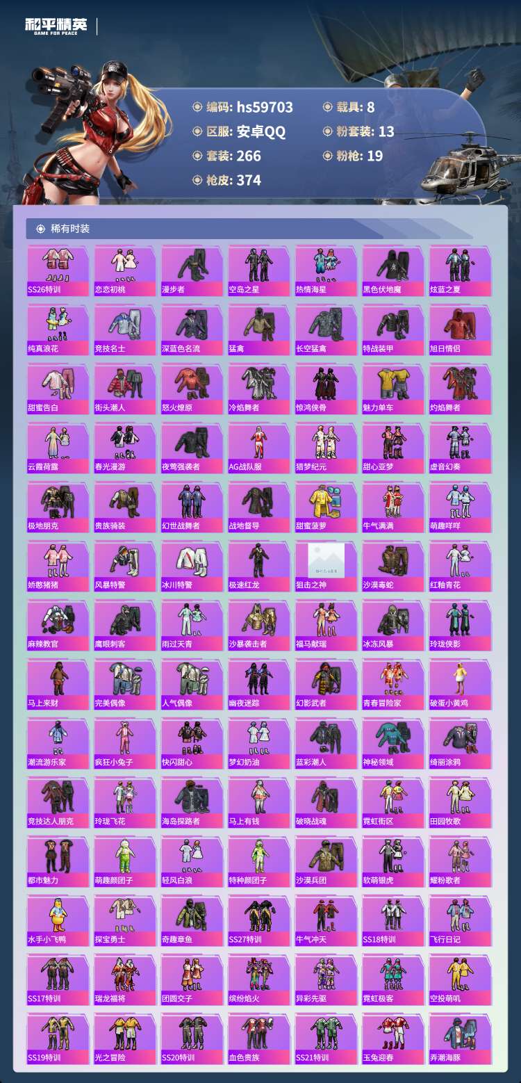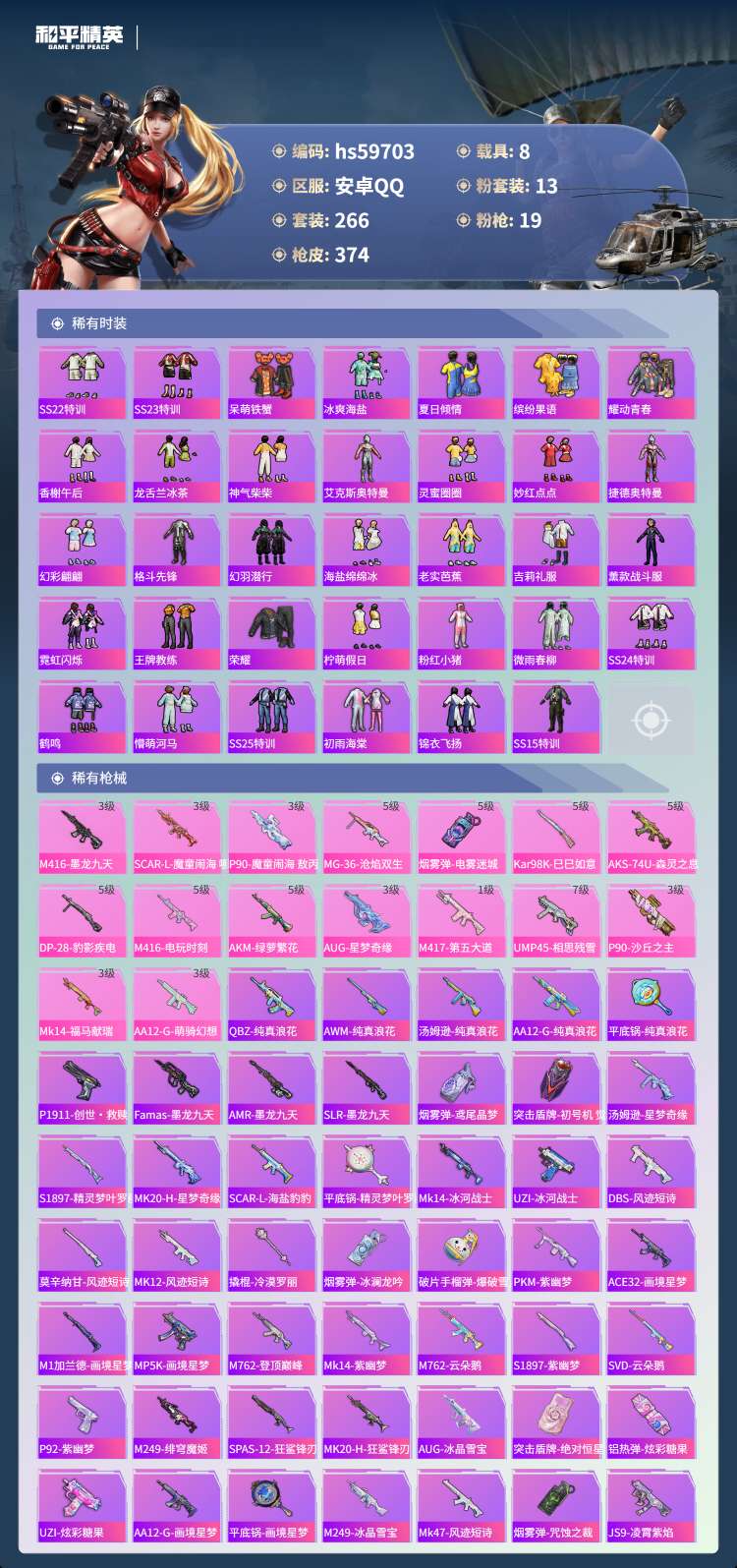 hs59703 安卓手Q-19王牌印记-有战神框-2红装-13粉装-19特效枪-8载具-131002