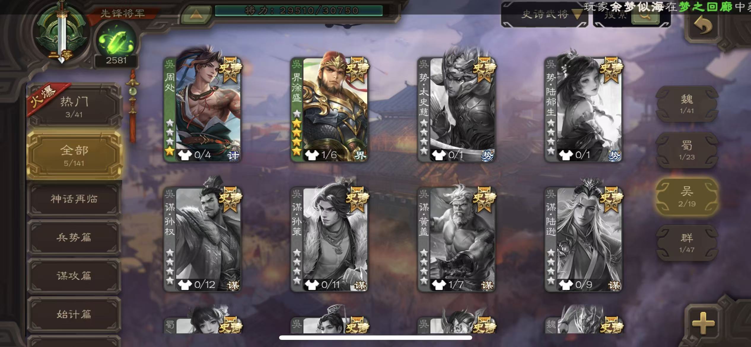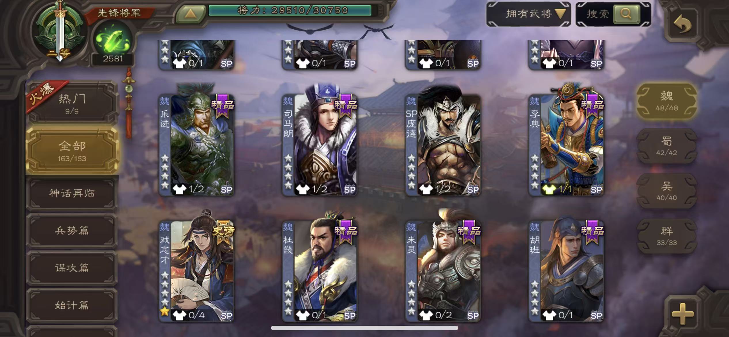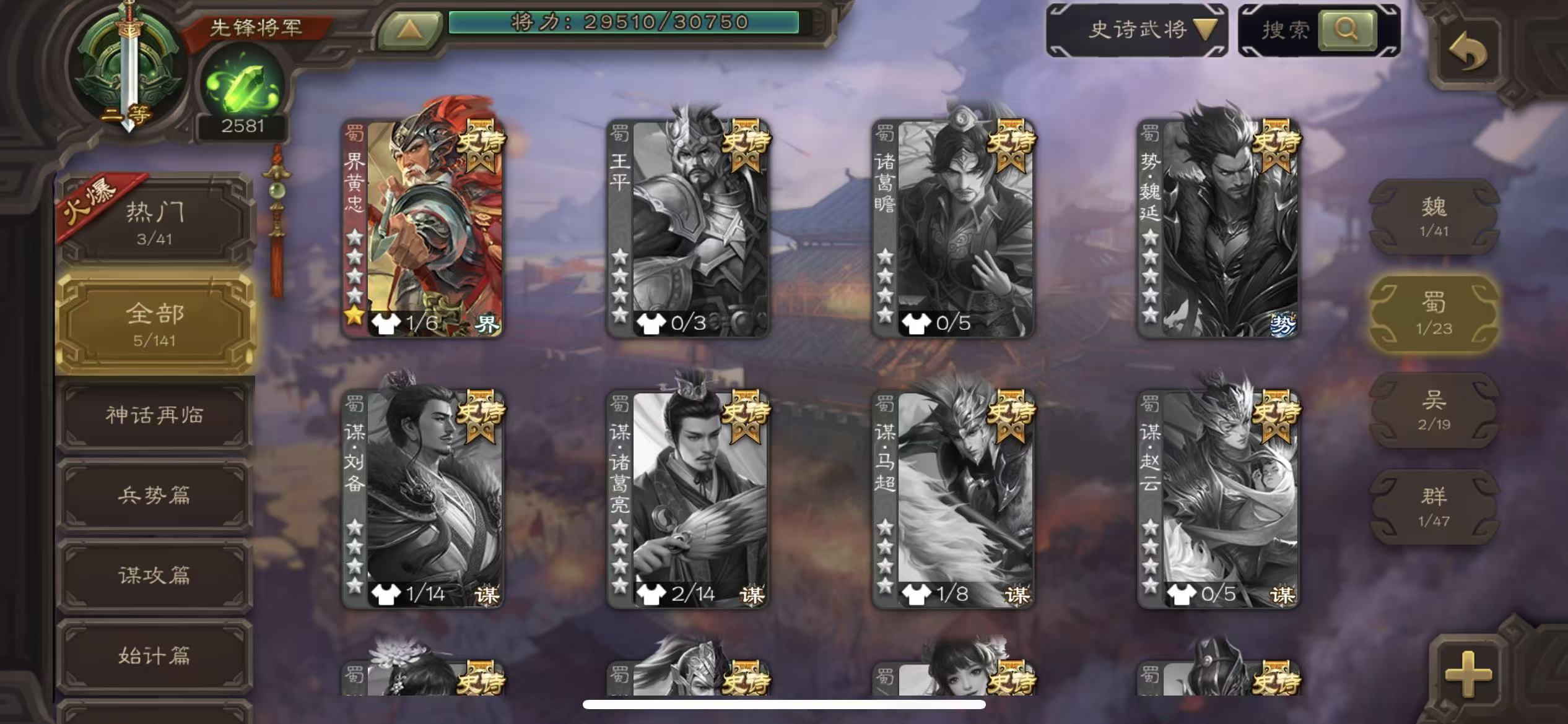 史诗武将数量: