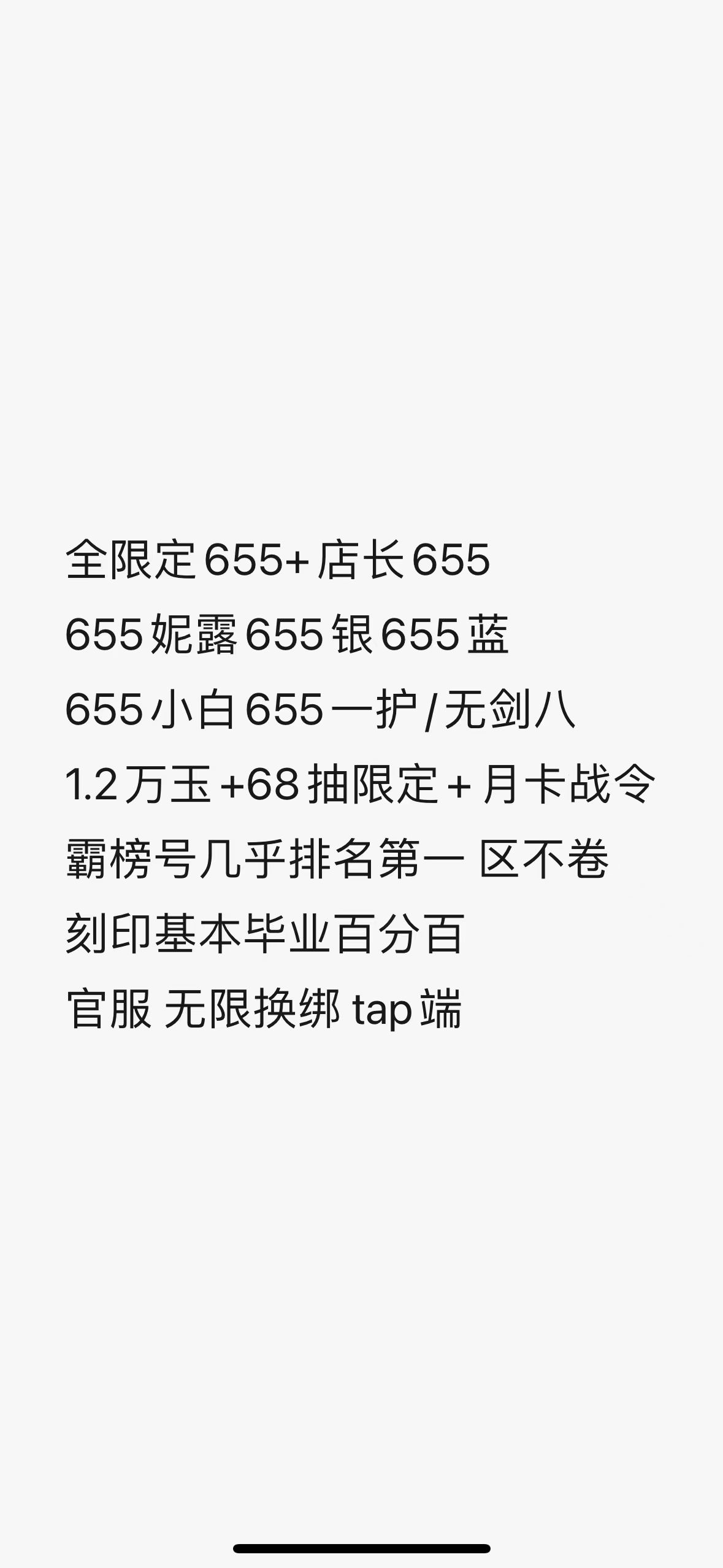 全限定655+店长655655妮露655银655蓝655小白655一护/无剑八1.2万玉+68