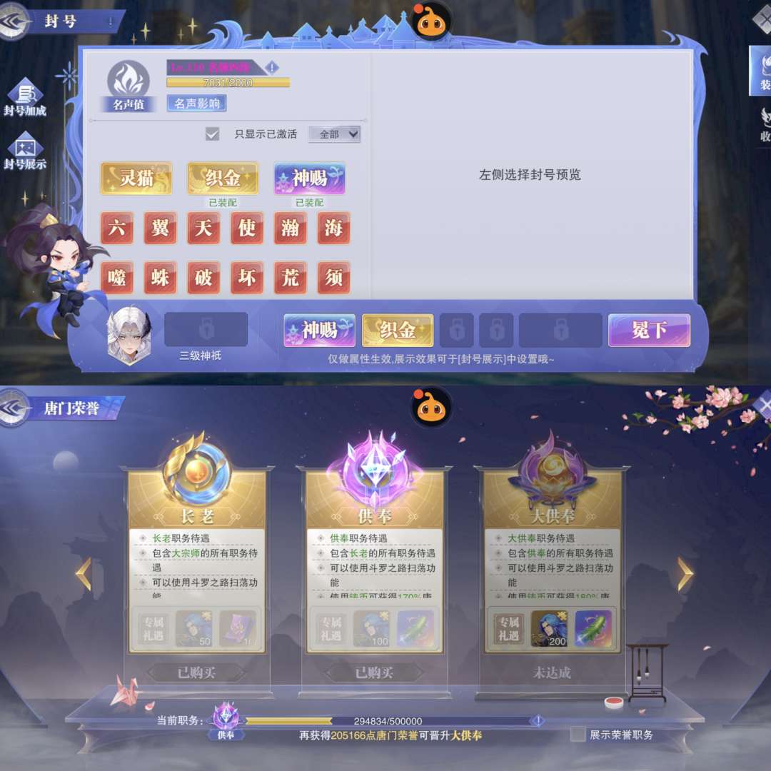 55亿战力。71级。供奉。红1神雪16sp。神赐 织金 灵猫。业火神诏双神。剑仙3个全皮。至臻萝莉