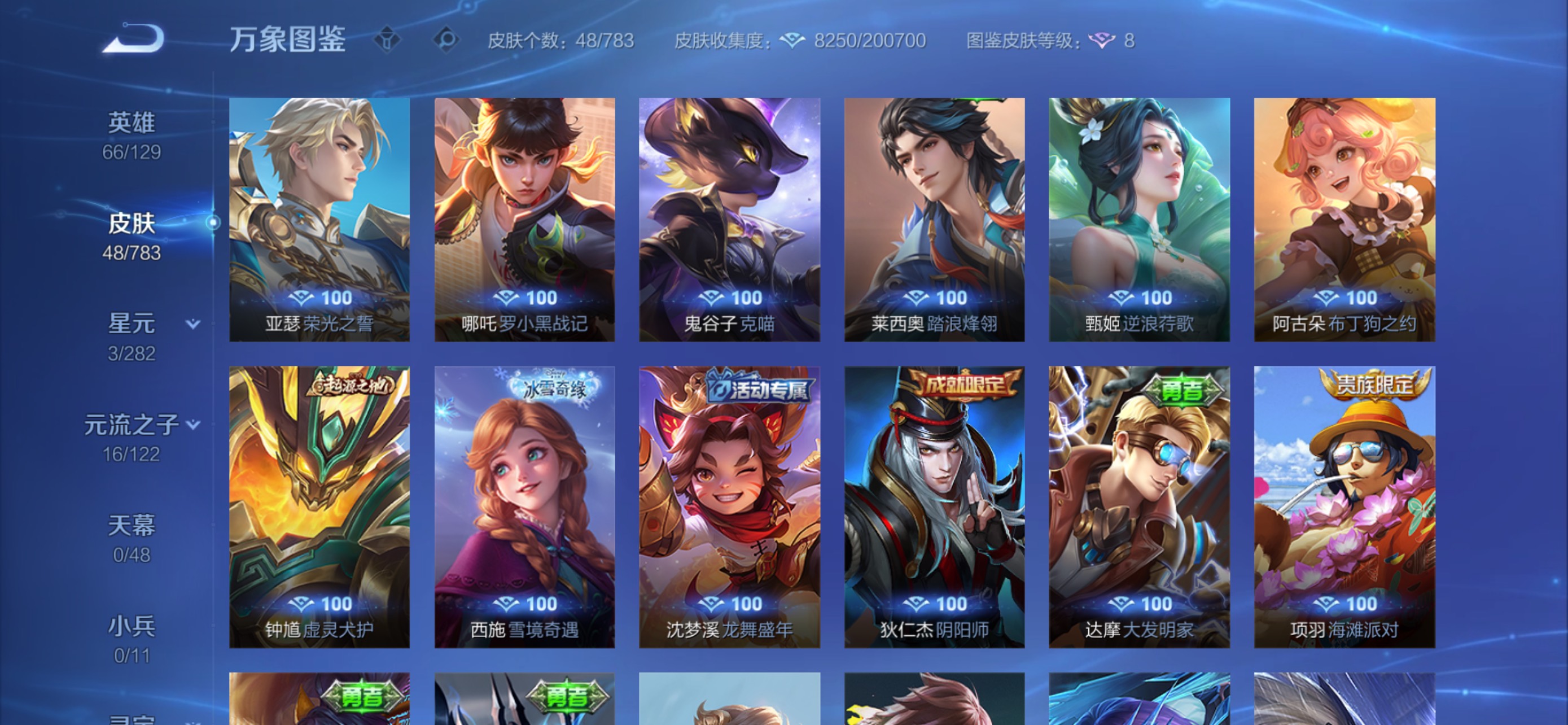 V5 皮肤48 英雄66 非凡王者 无双皮肤1 星传说2 传说5 其他皮肤45