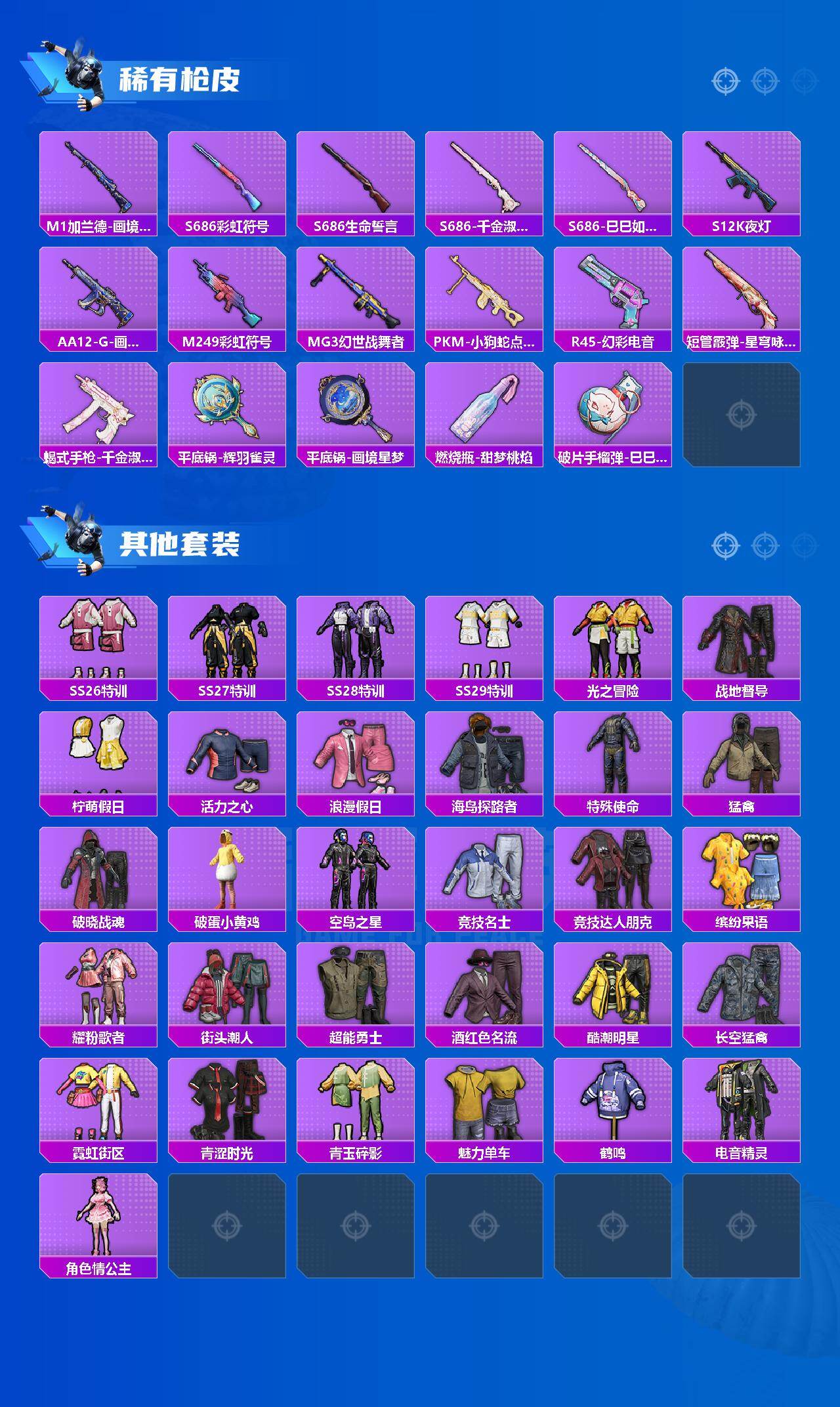 【mhp1167】苹果 微信-1神装-2粉装-8特效枪-1载具-2粉色飞行器-36052热力值-4王牌印记-73套装-121枪皮