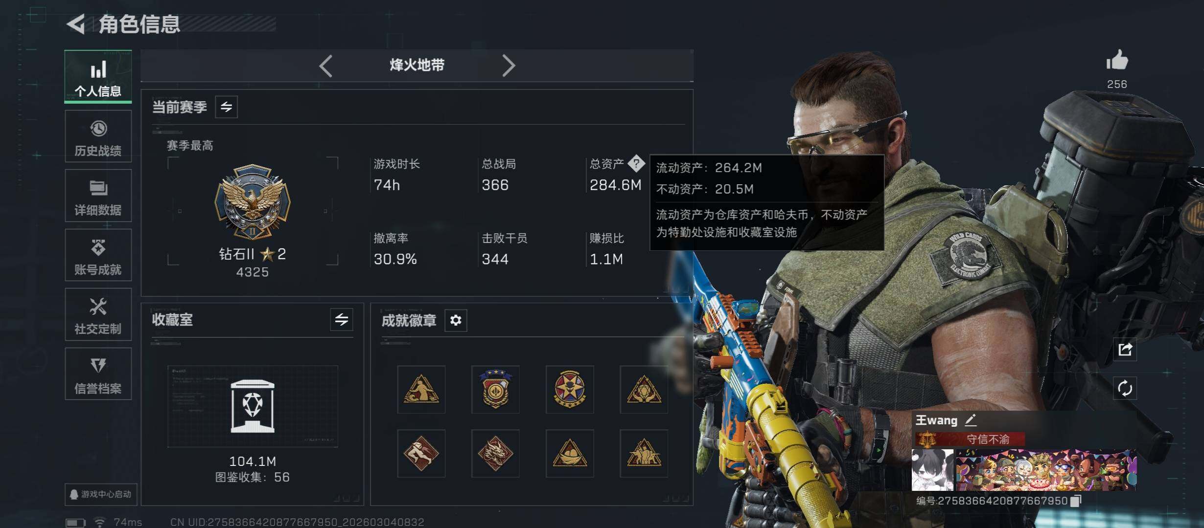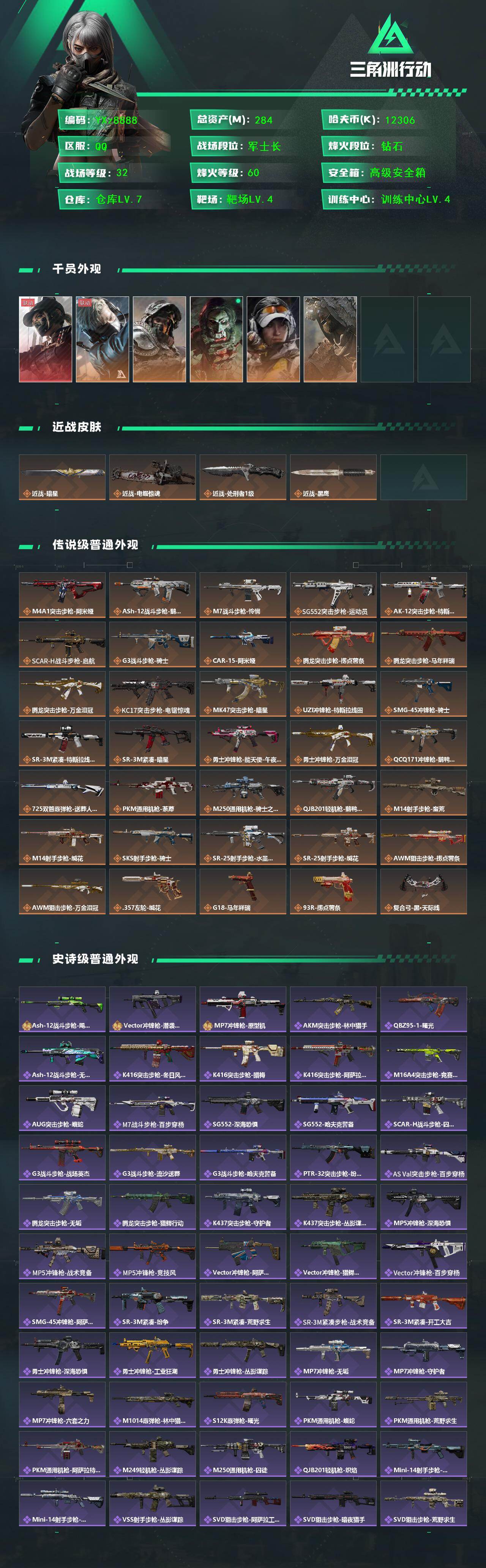 【热门组合搭配:黑天际线+双刀-暗星+电锯.资产284M】【Q区三端互通】【无二次】YXz8888-特勤处:仓库7级/靶场4级/训练中心4级-总资产284.6m-哈夫币1230w-烽火等级:60级