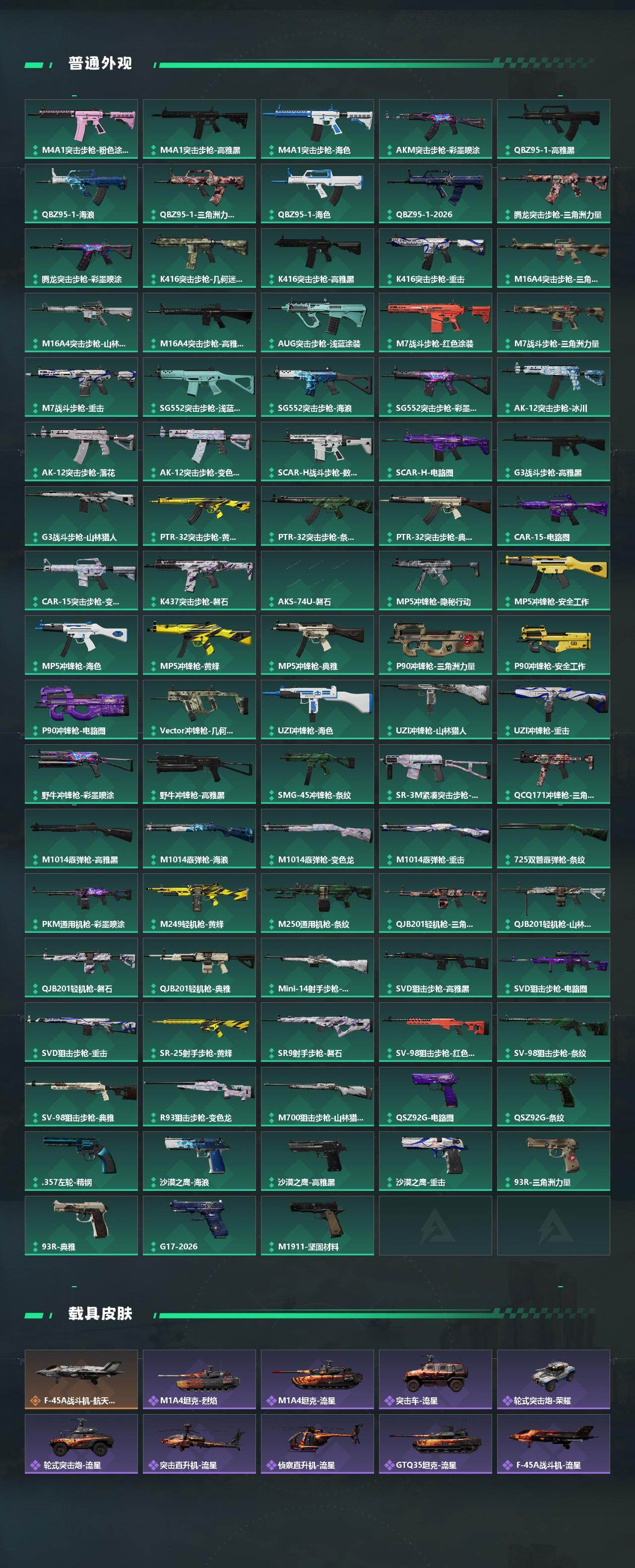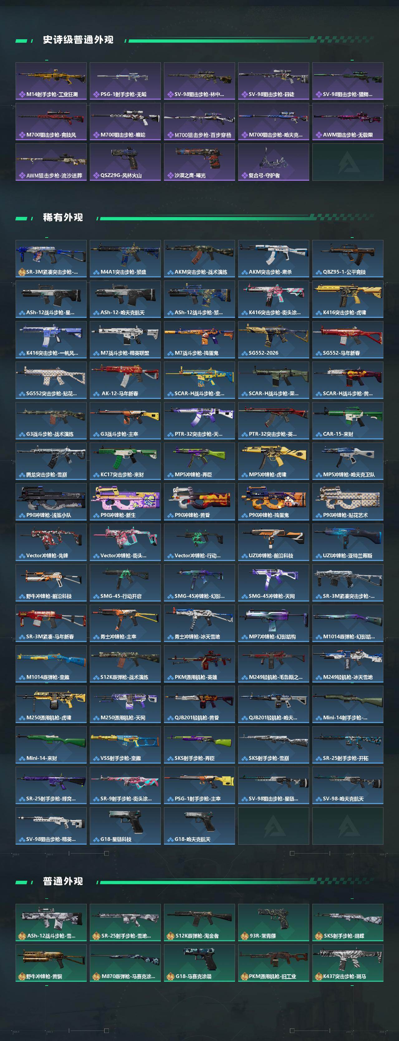 【传说外观】:M4A1突击步枪-阿米娅,ASh-12战斗步枪-鹅鸭杀,M7战斗步枪-怜悯,SG552突击步枪