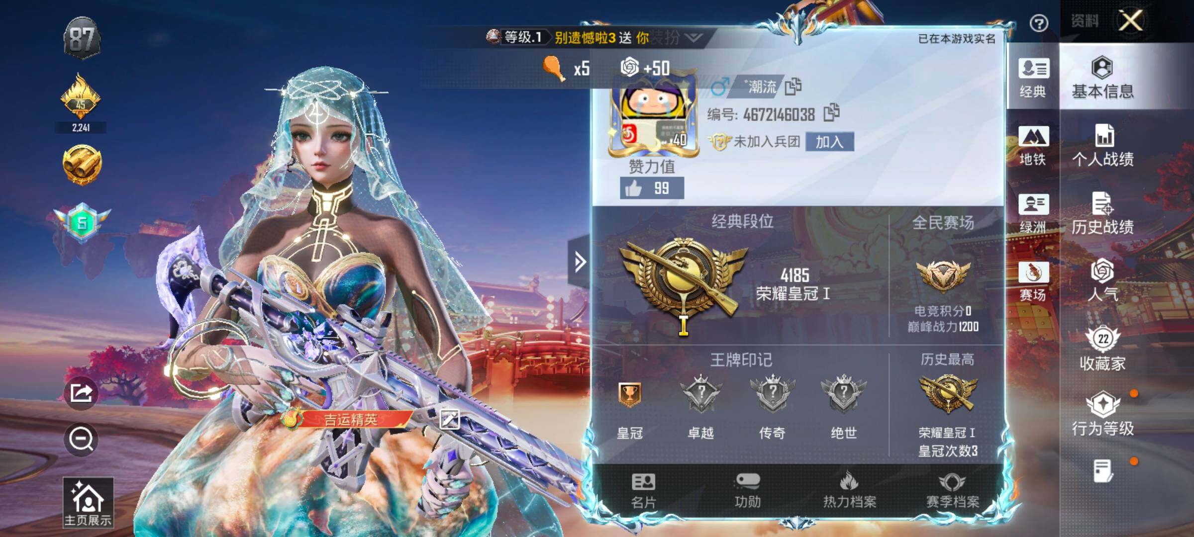 1稀有1粉装3特效枪5热门32套装38枪皮 历史荣耀皇冠Ⅰ
