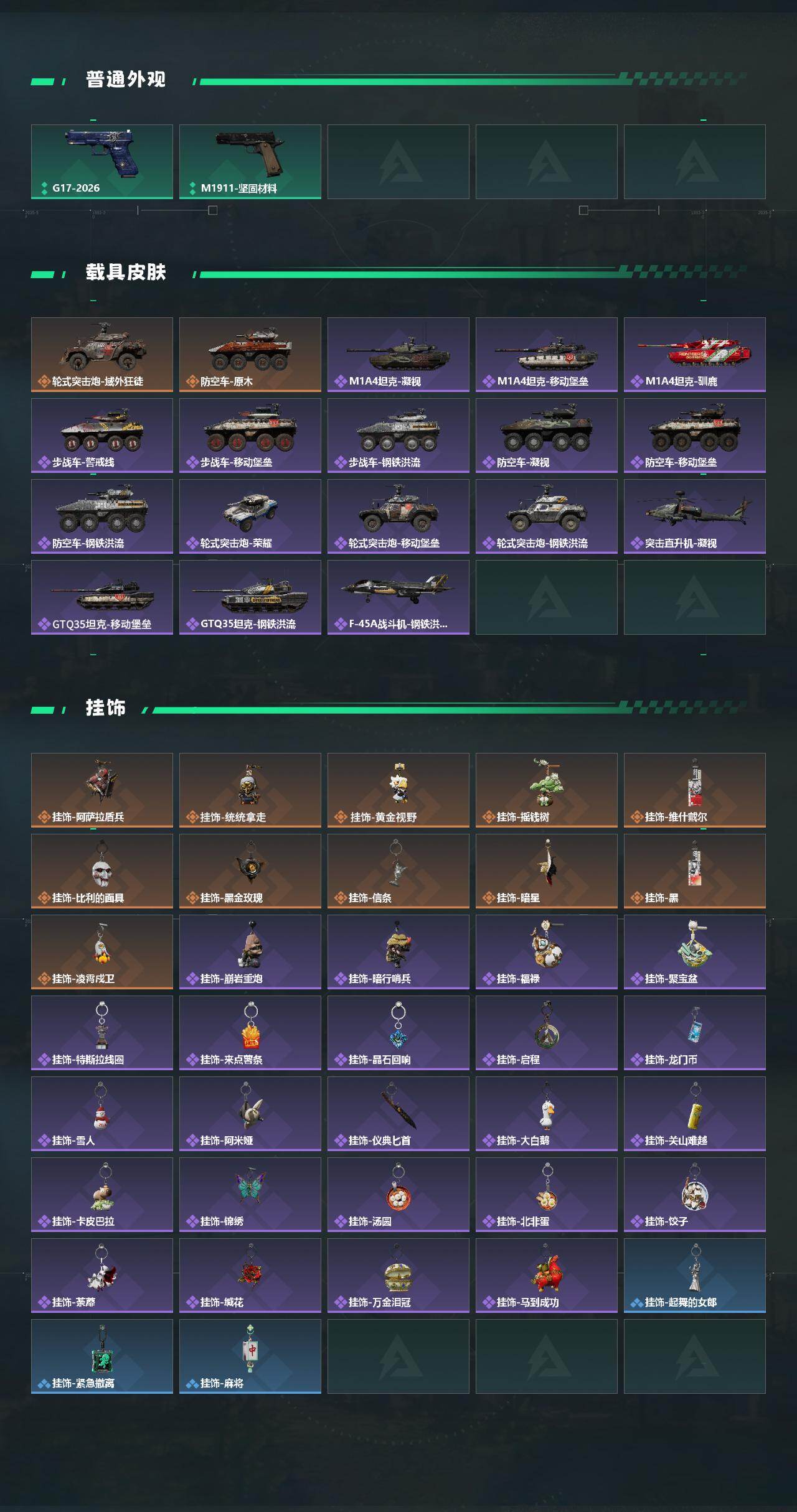 【近战皮肤】:近战-暗星,近战-信条,近战-怜悯,近战-赤枭,近战-龙牙,近战-电锯惊魂,近战-黑鹰