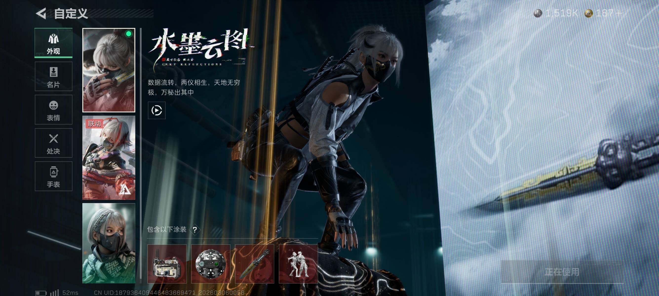 【干员外观】:红狼-蚀金玫瑰,骇爪-水墨云图,骇爪-维什戴尔,威龙-凌霄戍卫,蜂医-送葬人·无题密令,深蓝-不破誓约,红狼-电锯惊魂,露娜-金牌射手,乌鲁鲁-荒原猎手