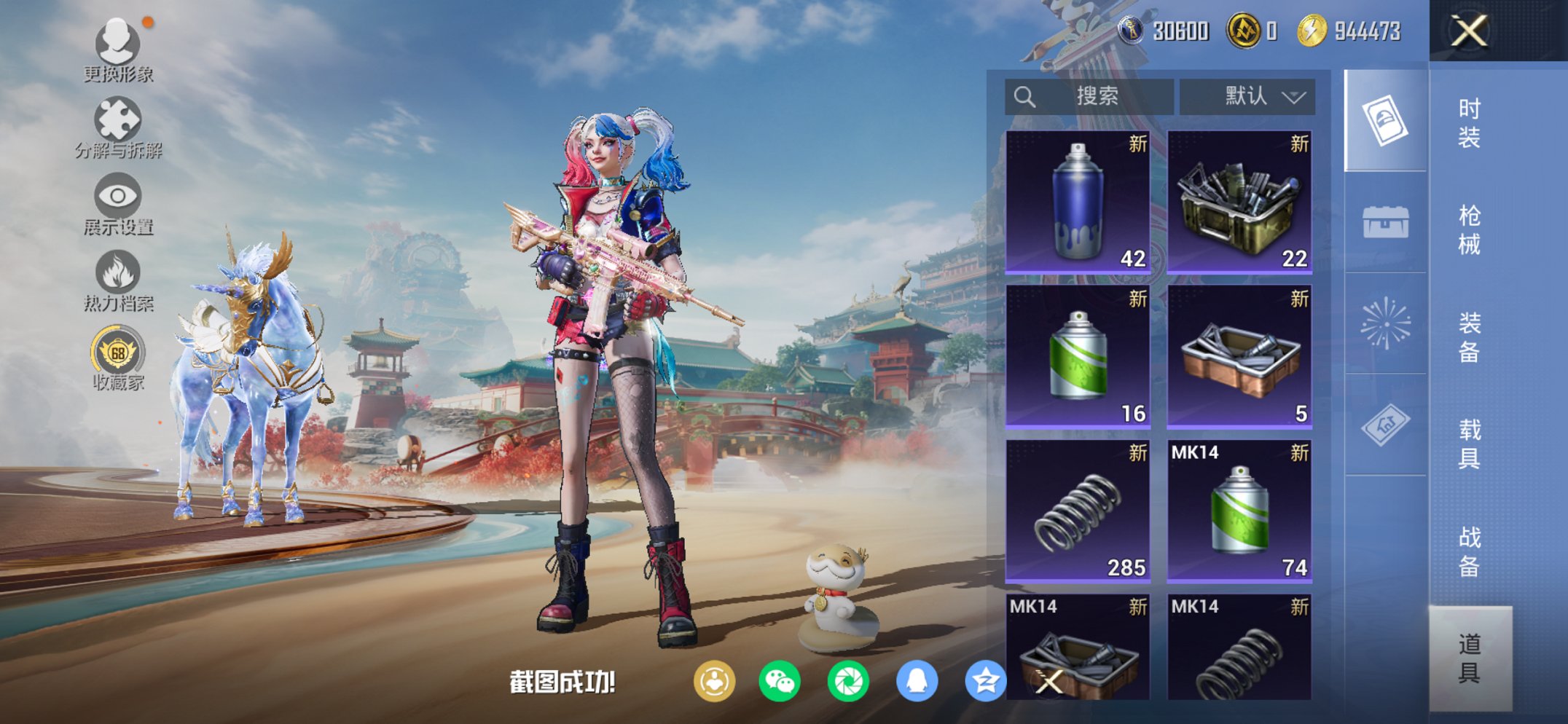 【AUG星梦奇缘小丑女都市猎人小番茄14特效枪6粉装1载具素材号 秒换绑不用等】 苹果Q区-70133热力值-188套装-212枪皮 【1载具】 星梦玉骢【3稀有】 都市猎人 红熊茄茄(权威小潘茄) AWM-黄金龙骨【6粉装】 狂魅哈莉(小丑女) 蜜桃特工 天禅智恒 角色-樱桃泡泡 幻彩电音 角色-千金淑猫【14特效枪】 AUG-星梦奇缘(6级) M416-心之恋语(7级) Mk14-福马献瑞(3级) UMP45-萌骑冒险(4级) 燃烧瓶-天降桃花(4级) GROZA-旋星之夜(4级) MG3-
