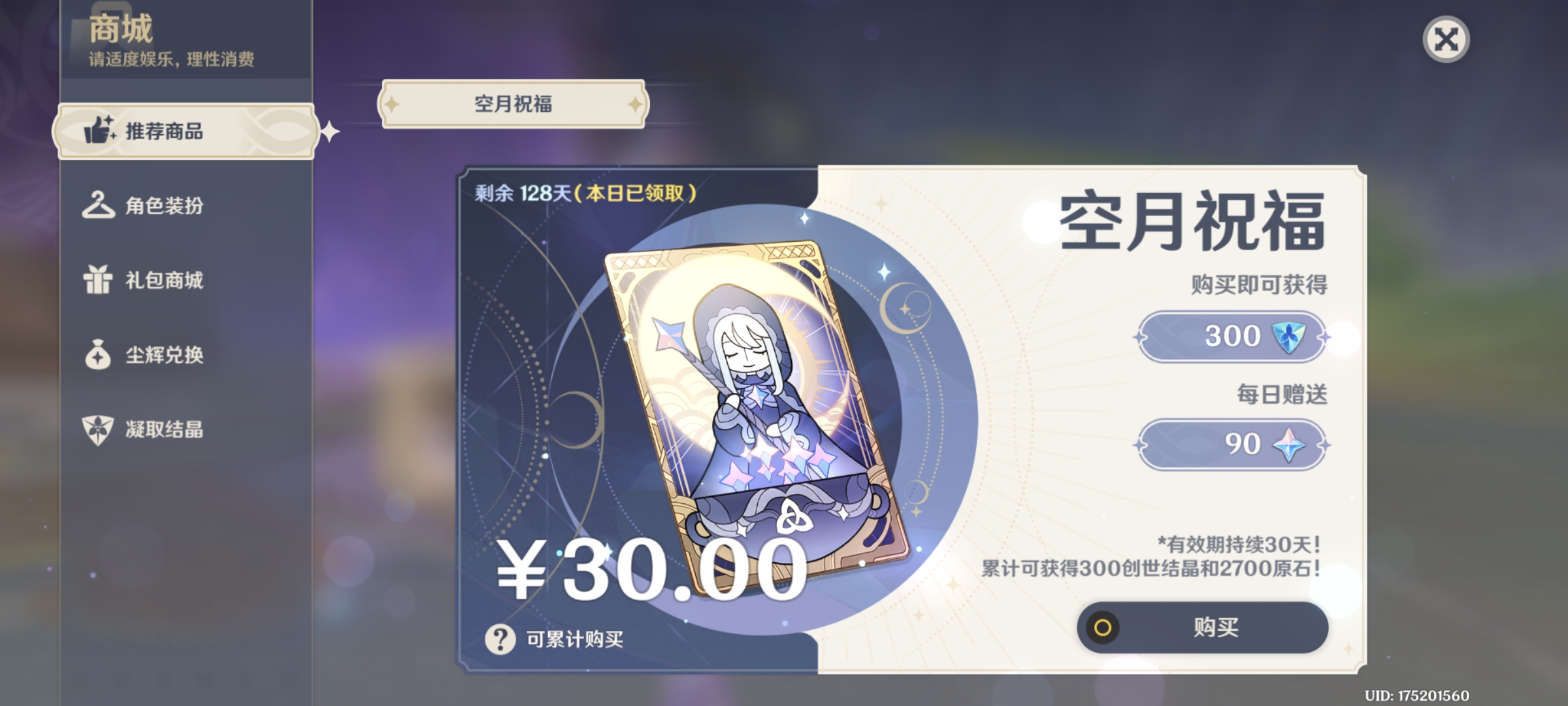 60级/100黄/女主/27个五星角色/24个五星武器/满命魈/