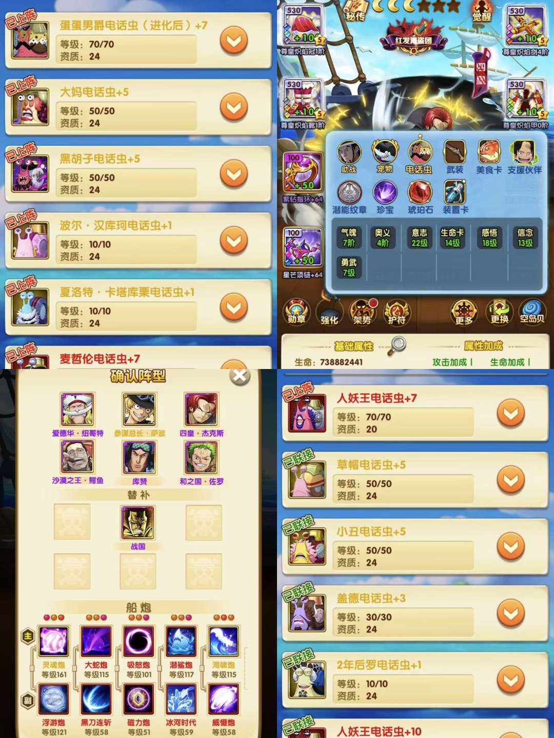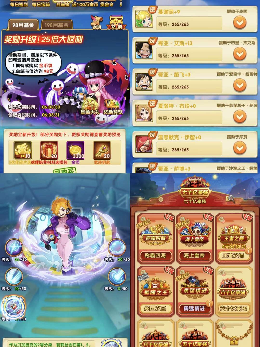 普攻越战红发,新援助全开,基金开,王者禁区八阶,钻石硬币页,多页金色,双白金船,月赛第一名