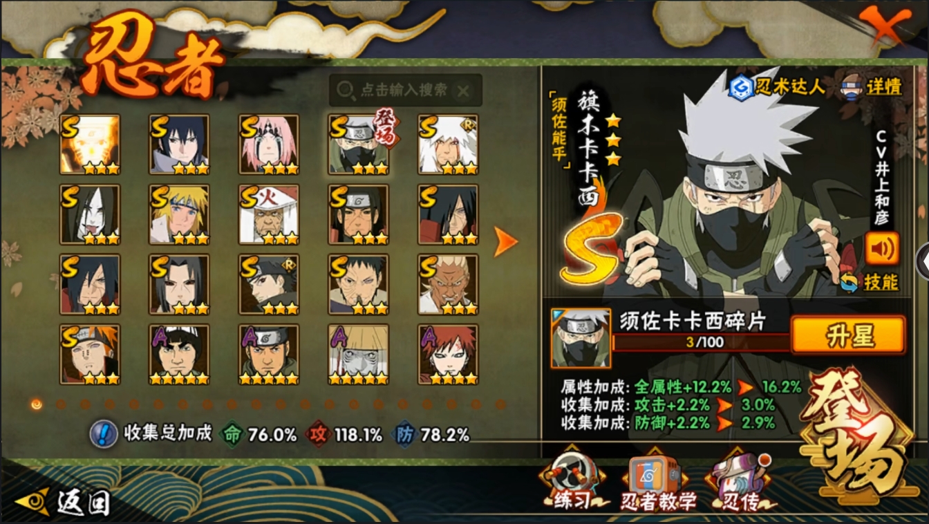 【编号32348可秒换绑】【店长推荐捡漏号】16S级忍者数-29A级忍者数【S级忍者】:千手柱间「秽土转生」(3星),宇智波鼬「秽土转生」(3星),宇智波斑「秽土转生」(3星),宇智波斑「秽土转生·解」(3星),春野樱「忍界大战」(3星),宇智波带土「忍界大战」(3星),艾「忍界大战」(3星),宇智波止水「须佐能乎」(3星),旗木卡卡西「须佐能乎」(3星),自来也「舞之豪杰」(3星),大蛇丸(3星),猿飞日斩(3星),波风水门(3星),漩涡鸣人「九喇嘛连结」(3星),佩恩「天道」(3星),宇智波