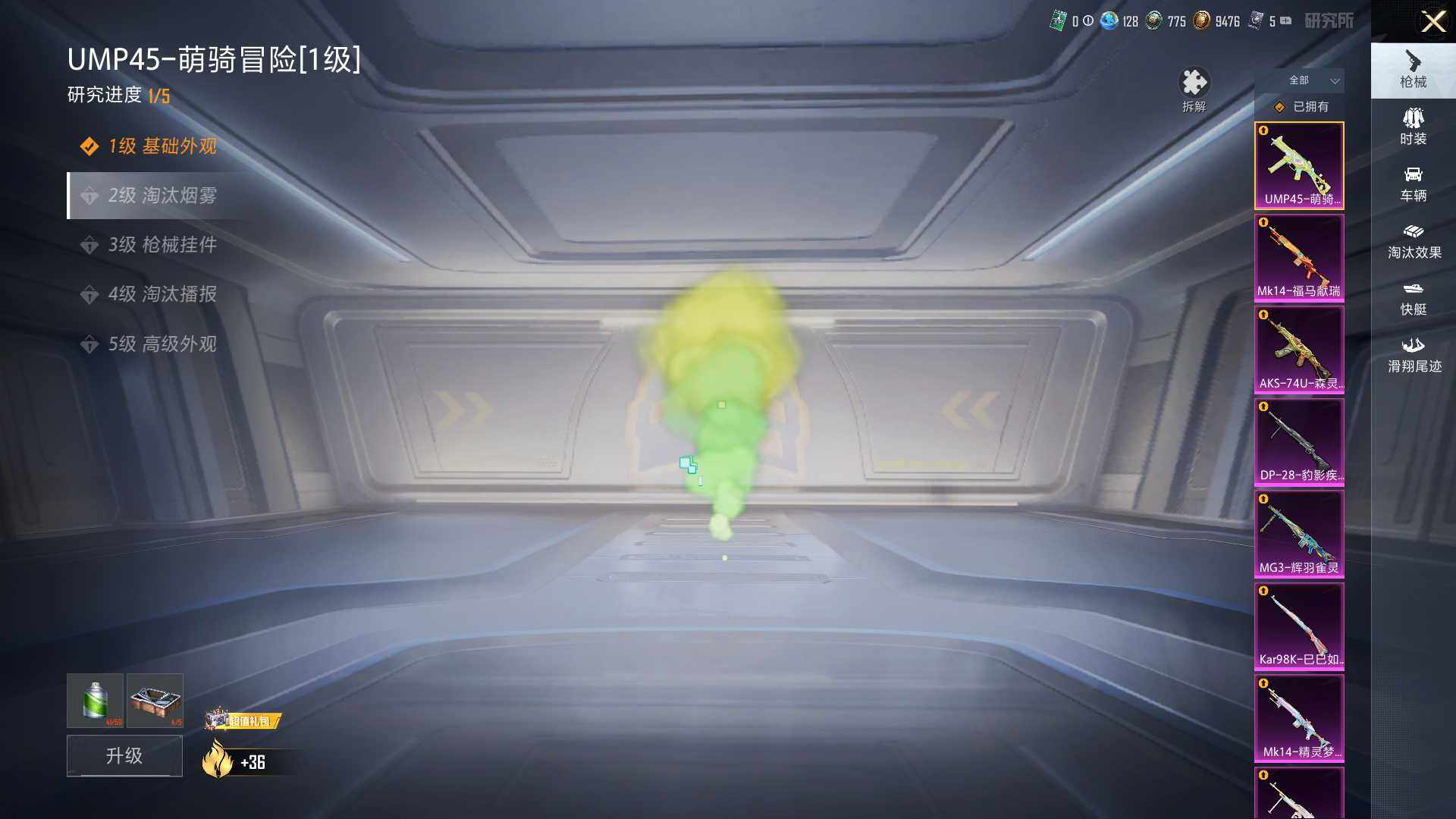 1神装-7粉装-10特效枪-0载具-8粉色飞行器-74776热力值-11王牌印记-145套装-241枪皮