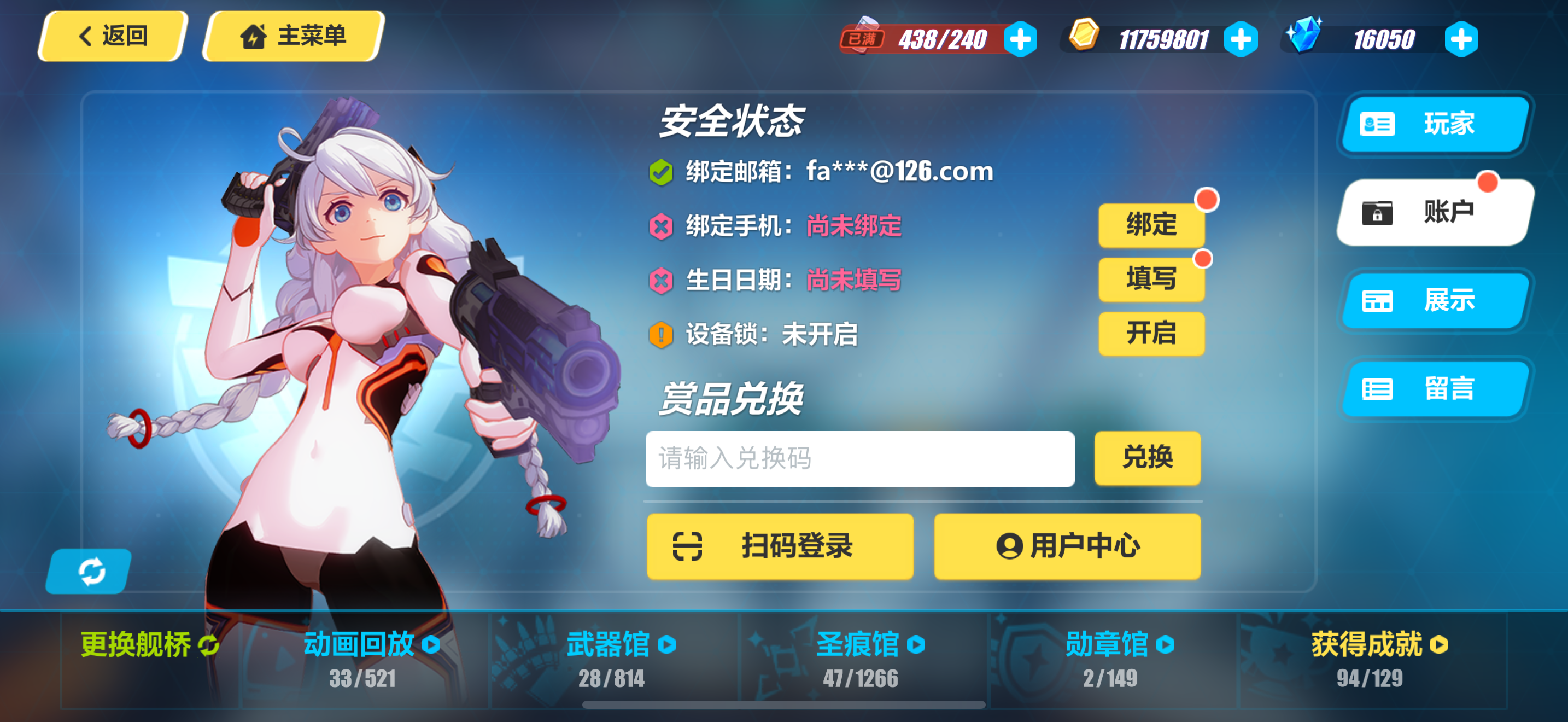 崩坏3官服 毕业爱愿妖精带皮肤+1.6万水晶人律+1个自选s