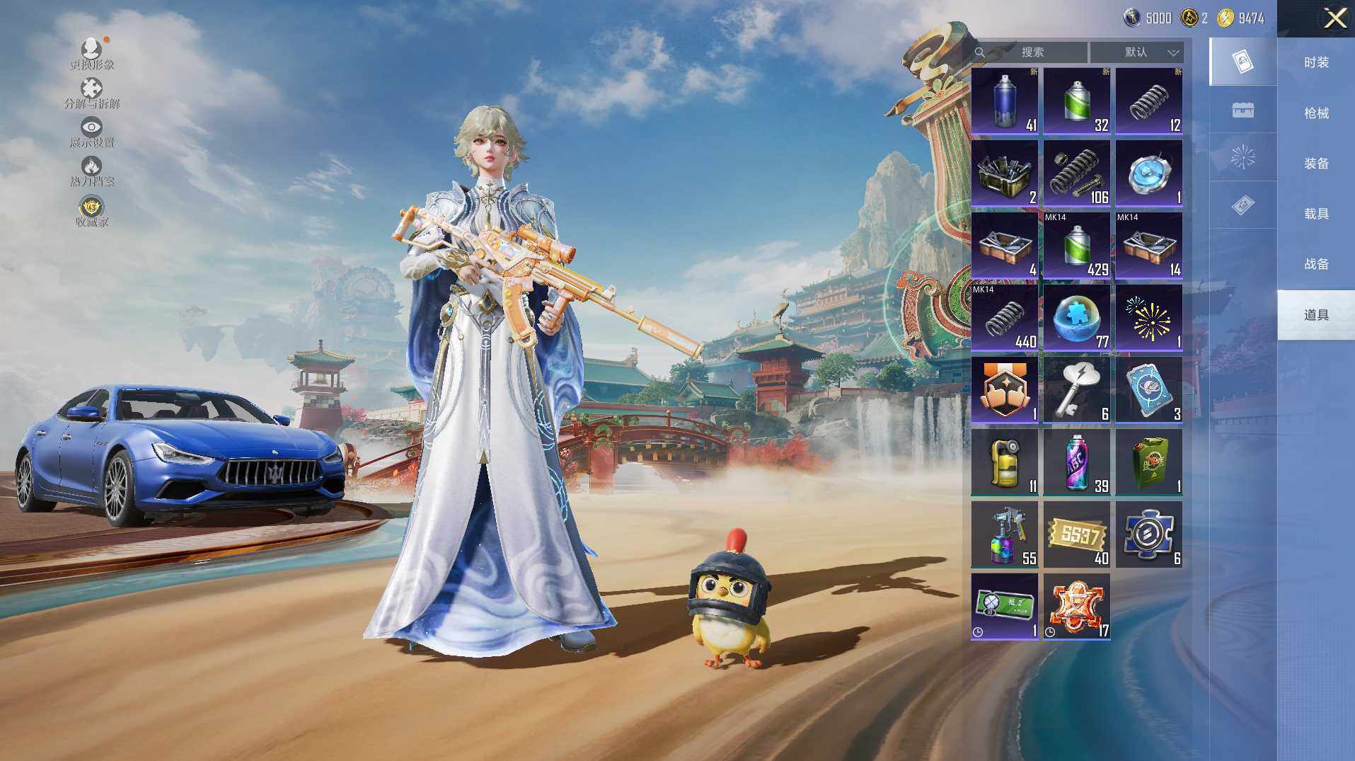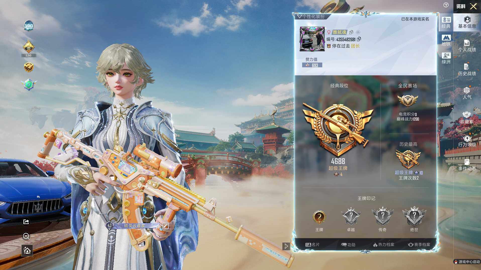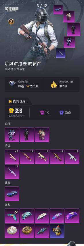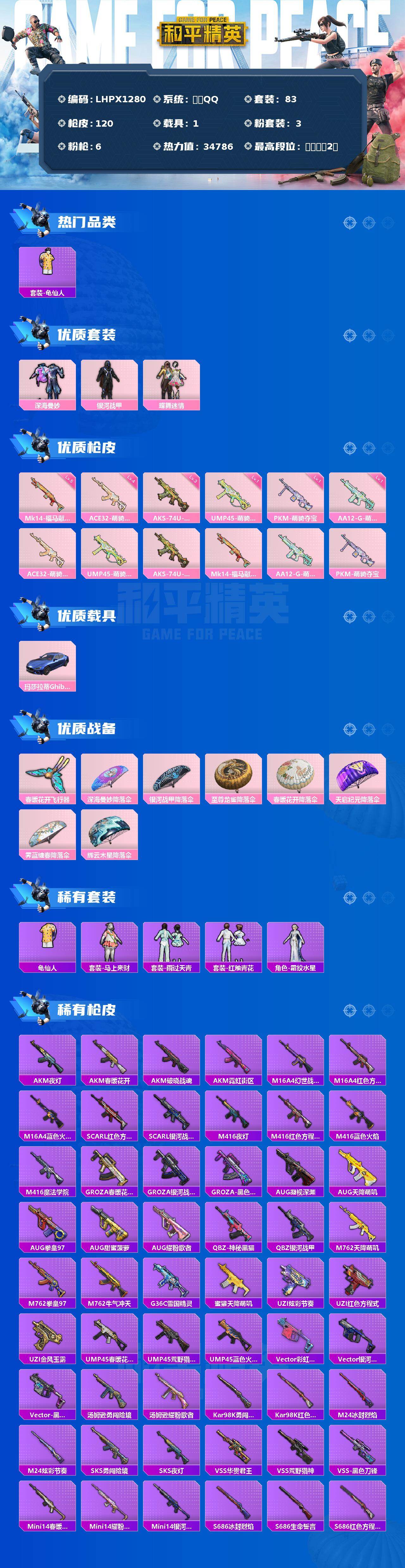 3粉装-6特效枪-1载具-1粉色飞行器-34786热力值-2王牌印记-83套装-120枪皮