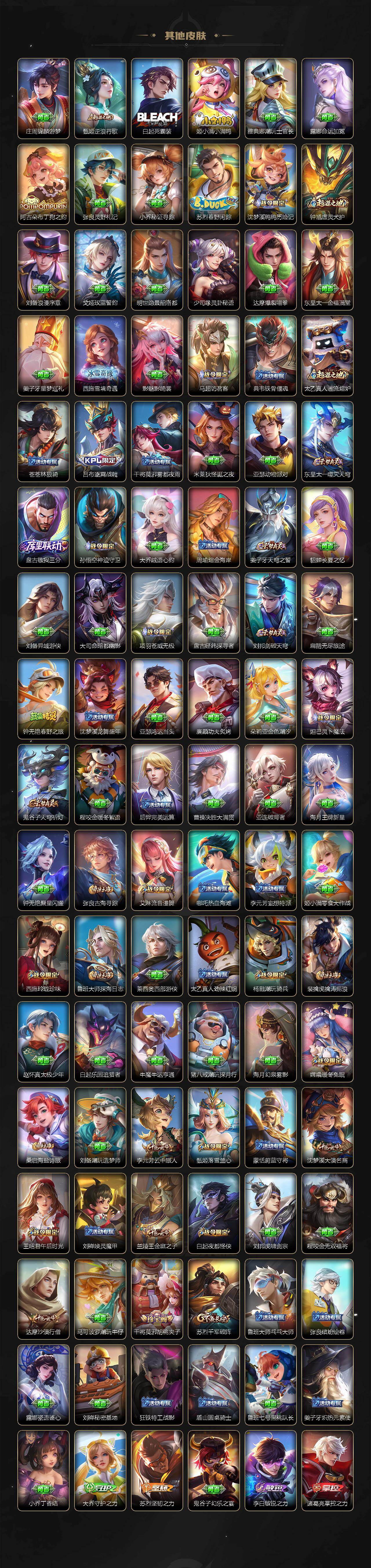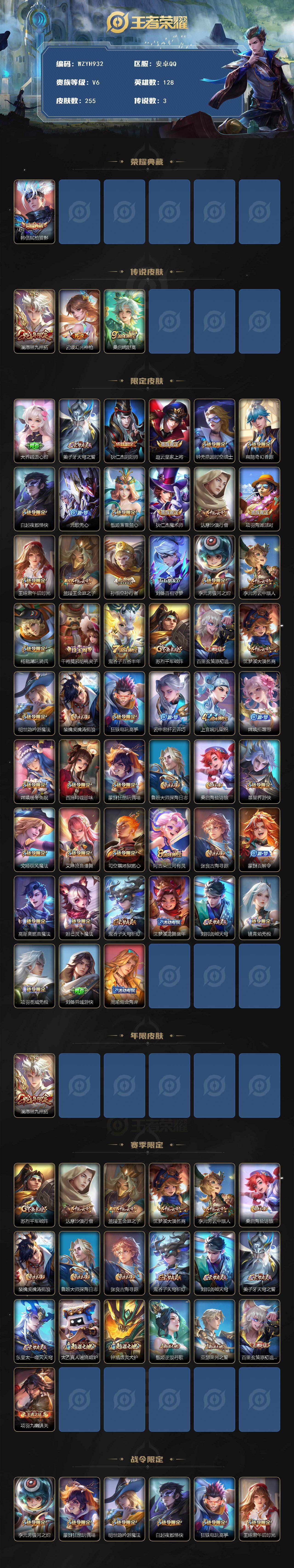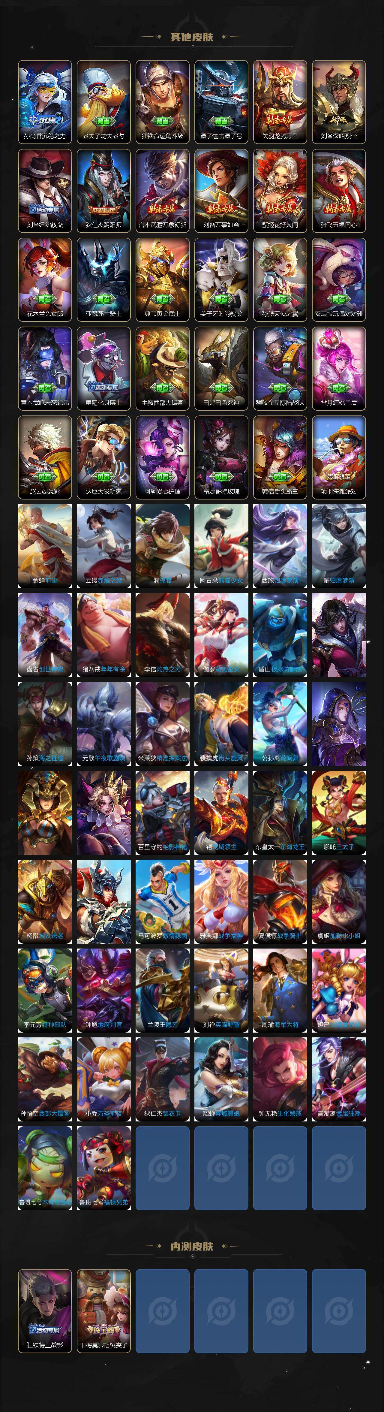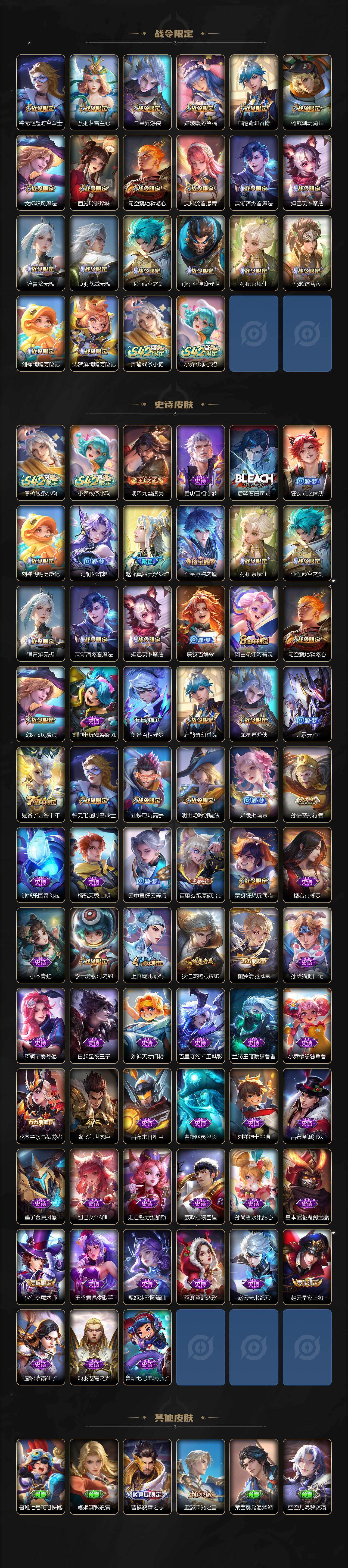 贵族6/皮肤255/典藏1/传说3/史诗67/英雄128