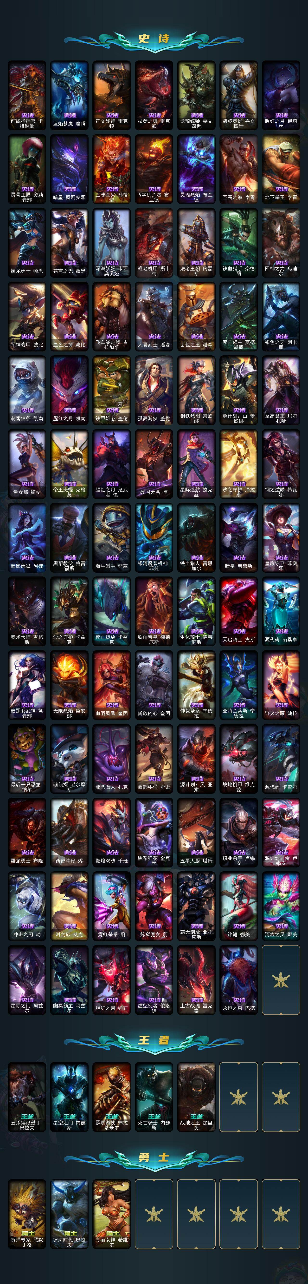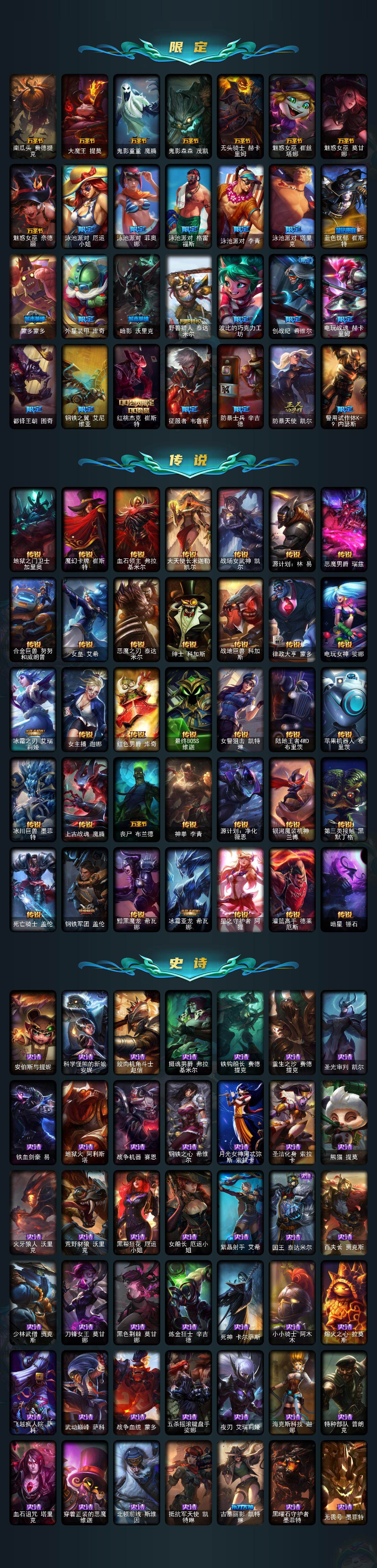 未定级段位-159英雄-450皮肤-25炫彩-2终极-7神话-86限定-35传说-132史诗
