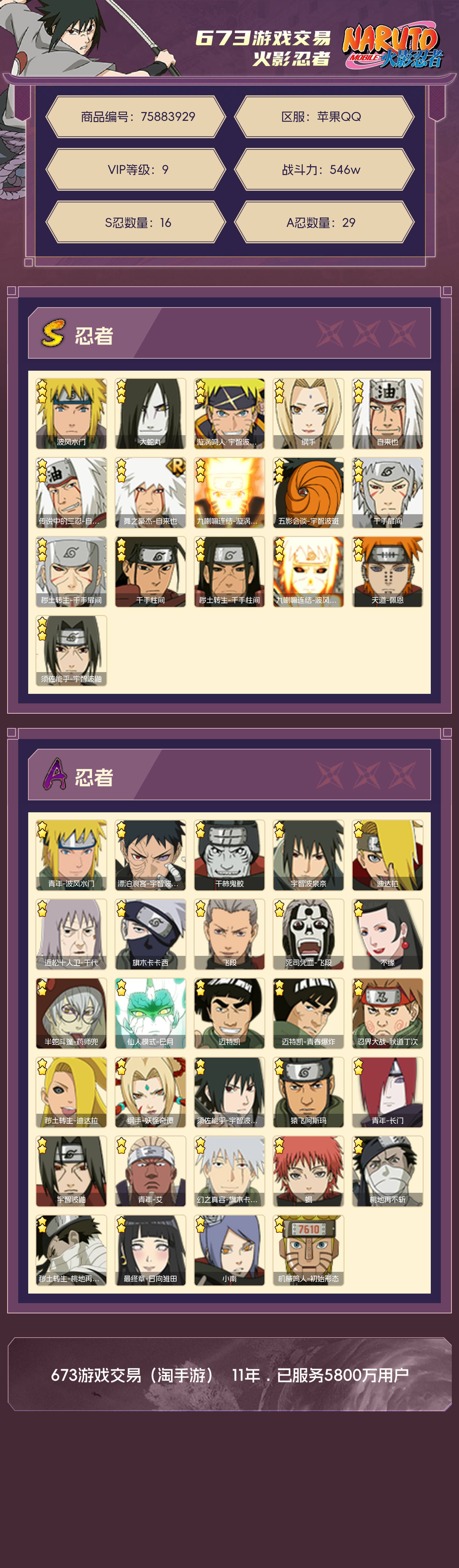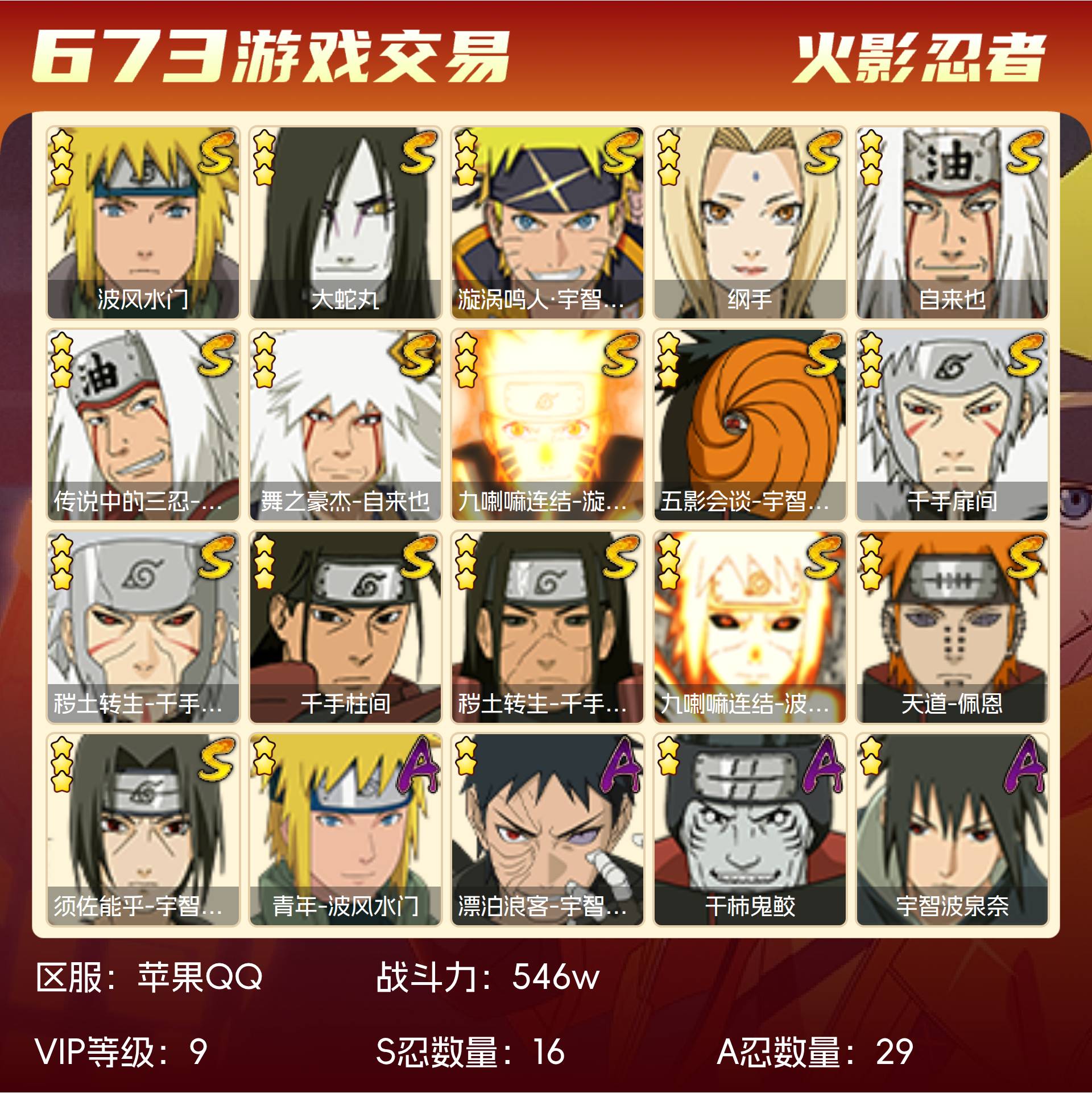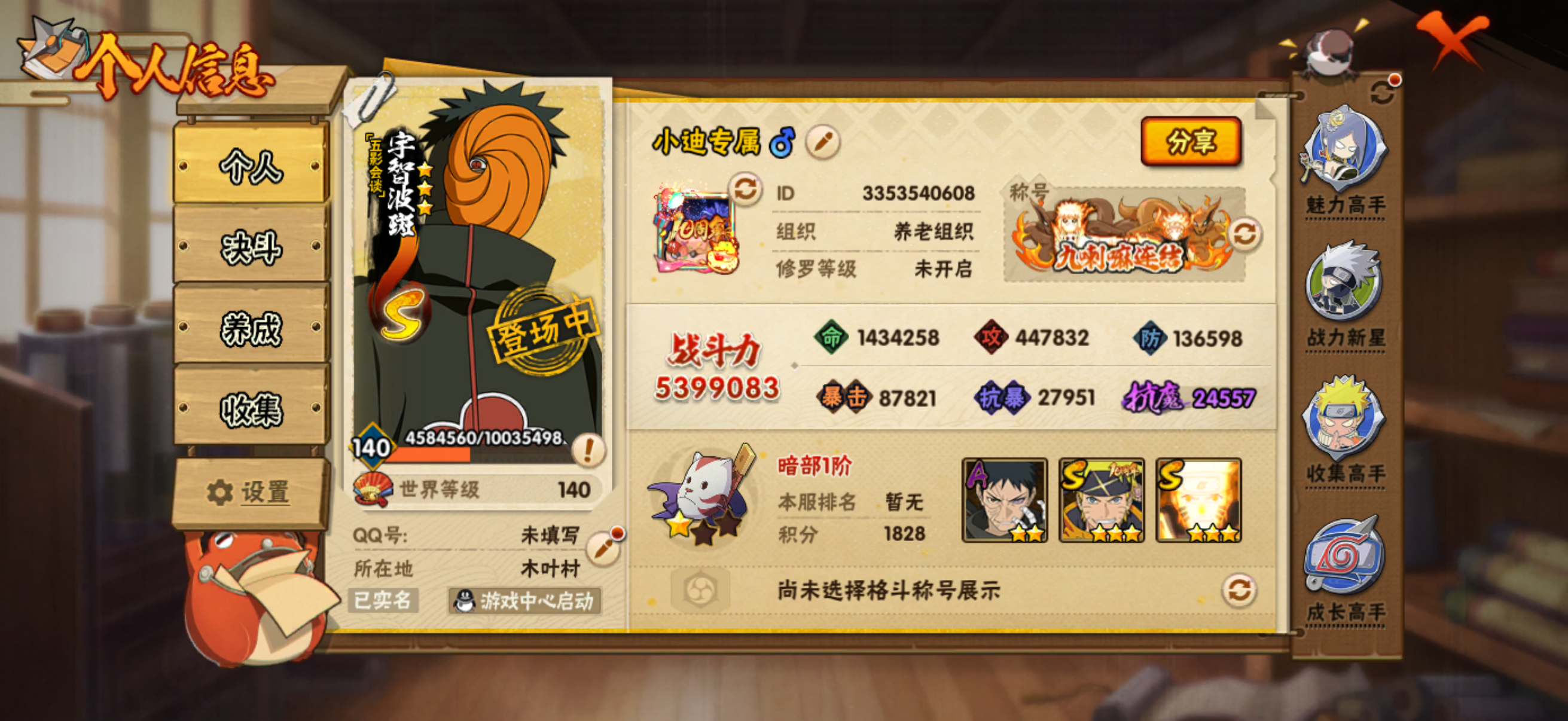 角色等级140 金币880 战斗力546w S忍16 A忍29 9 段位暗部
