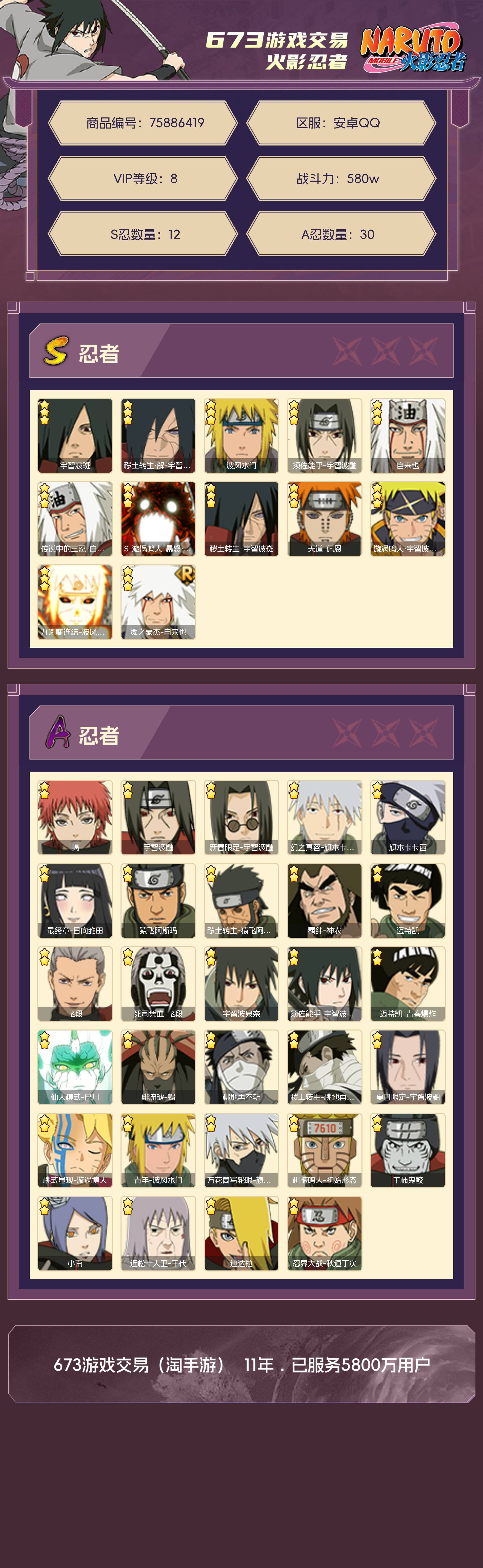 角色等级142 战斗力580w S忍12 A忍30 8 段位影级