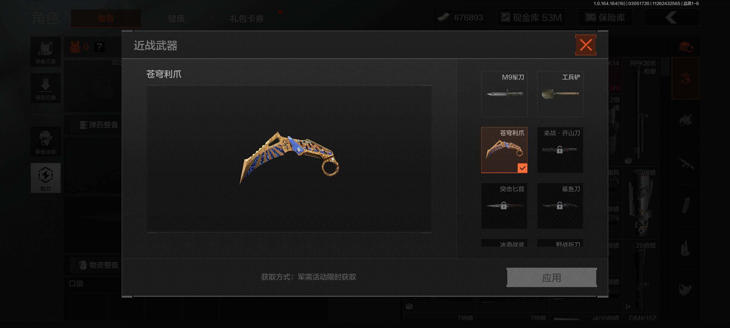 段位:王牌/仓库价值(百万):124/柯恩币:530000/