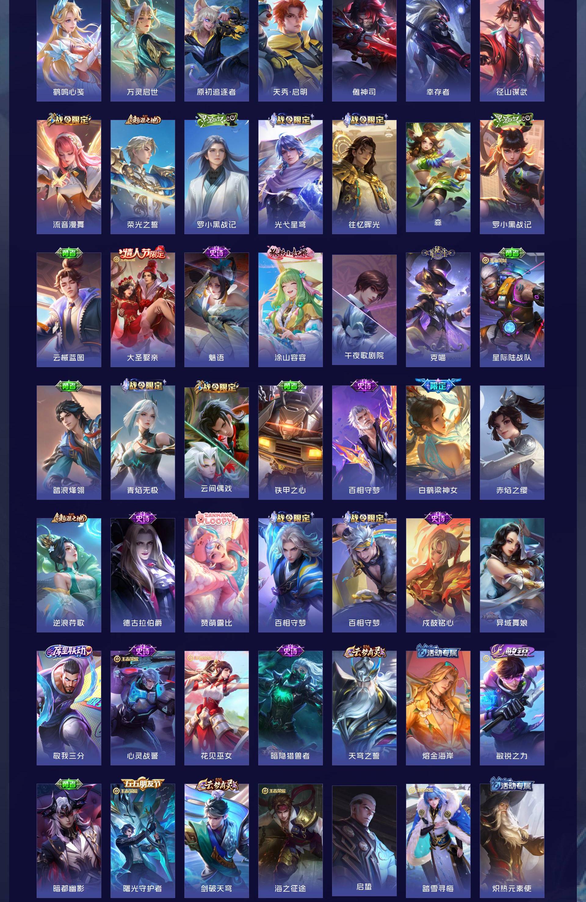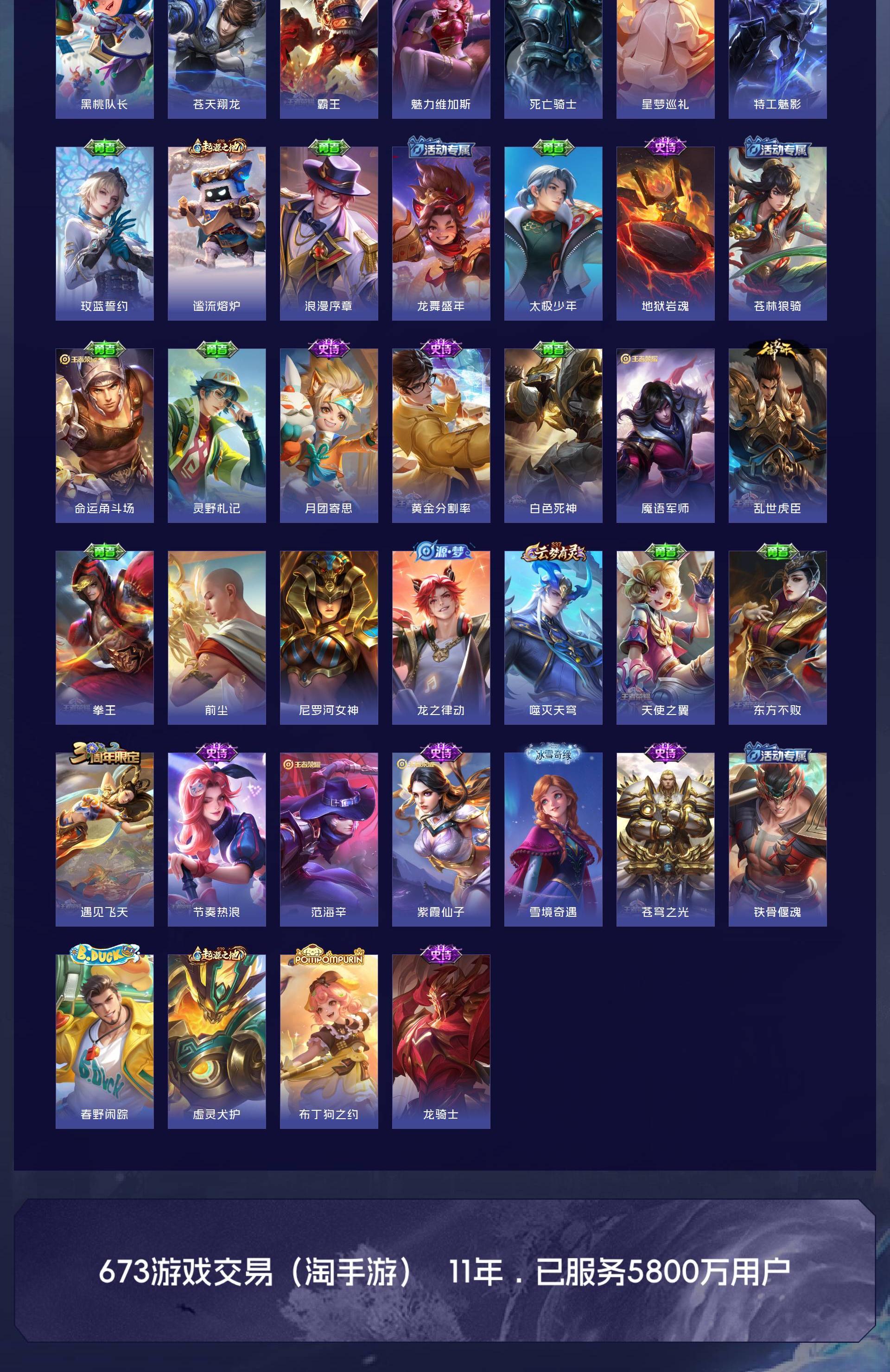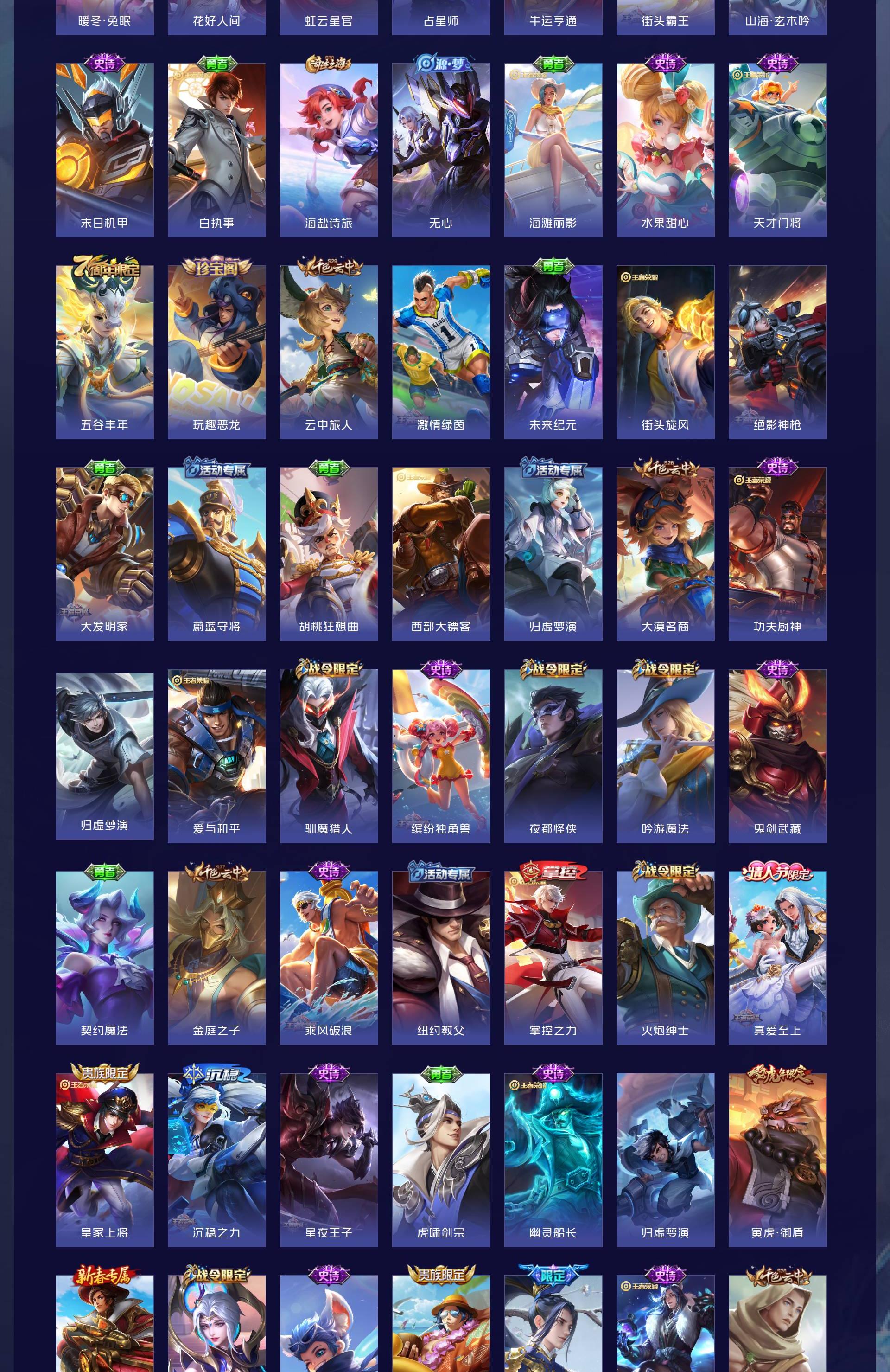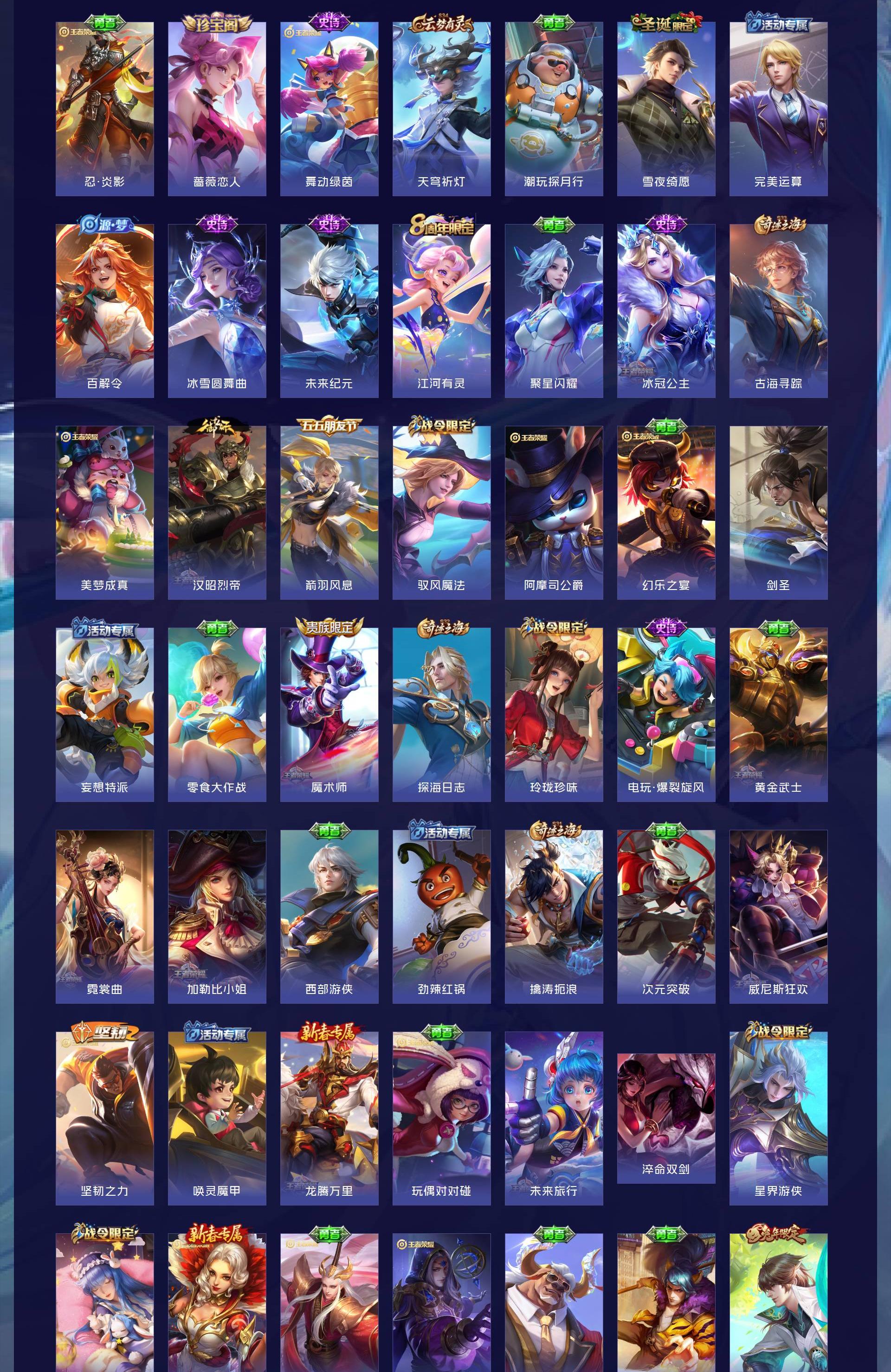V7 皮肤271 英雄127 至圣王者 荣耀典藏1 无双皮肤3 珍品传说1 星传说1 传说16 其他皮肤256