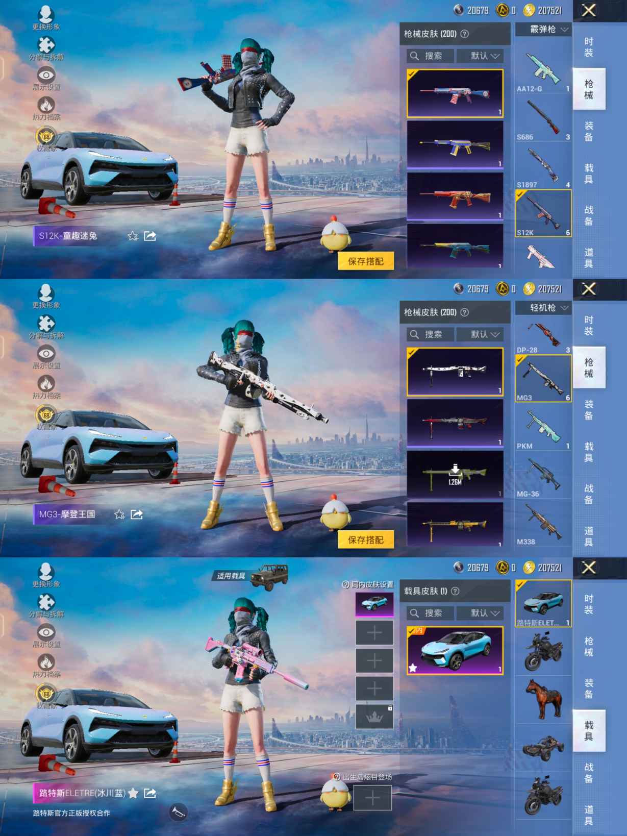 身法号1载具-8粉装-6特效枪金鞋 都市猎人 暗影哥特 浪漫天命 深海小丑鱼
